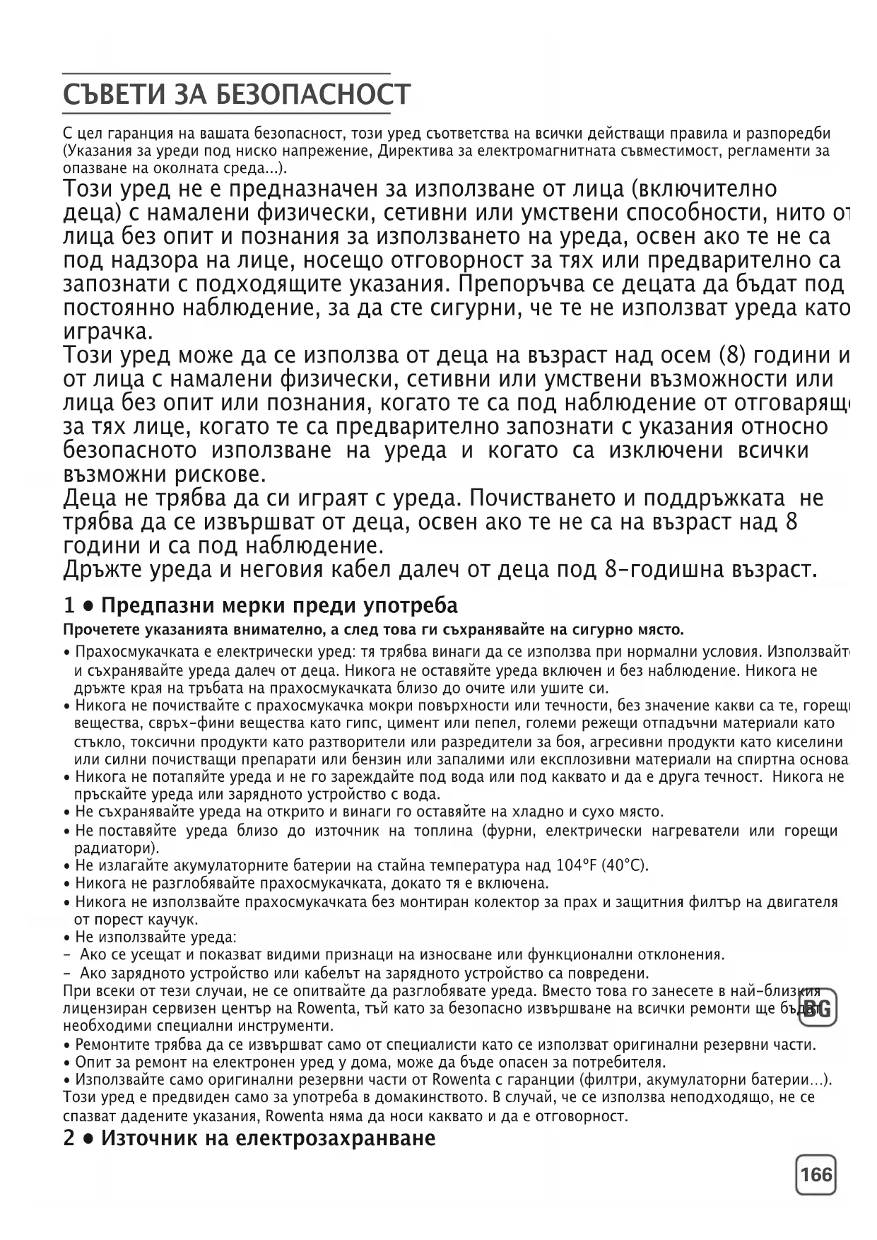 - Използвайте само оригинални резервни части от Rowenta с гаранции (филтри, акумулаторни батерии…). Този уред е предвиден само за употреба в домакинството. В случай, че се използва неподходящо, не се спазват дадените указания, Rowenta няма да носи каквато и да е отговорност. 2 • Източник на електрозахранване RO_AIR_FORCE_EXTREME_903097_05_V8_903097/05 08/04/13 14:41 Page166167 *Може да се различава в зависимост от модела