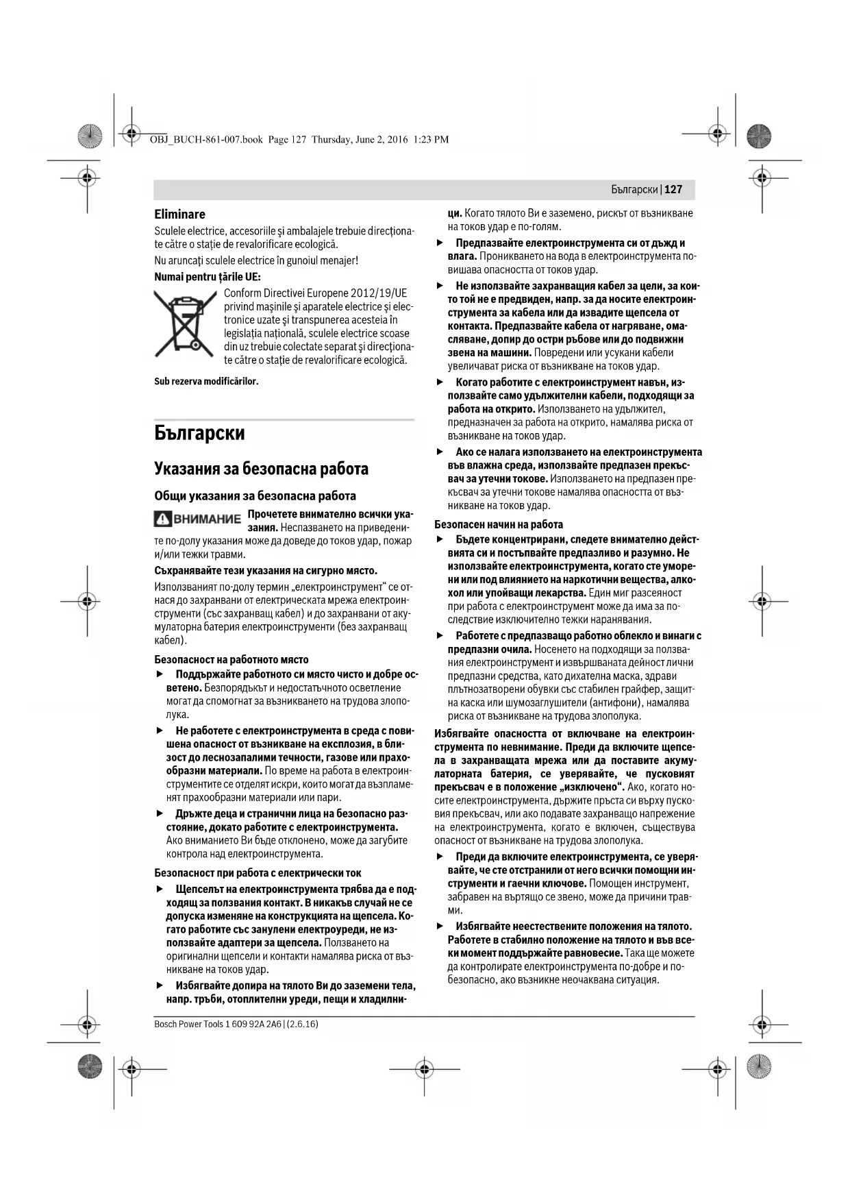 Само за страни от ЕС: Съгласно Директивата на ЕС 2012/19/EC относно бракувани електрически и елек- тронни устройства и утвърждаването й като национален закон електроинстру- ментите, които не могат да се използват повече, трябва да се събират отделно и да бъдат подлагани на подходяща преработка за оползотво- ряване на съдържащите се в тях вторични суровини. Правата за изменения запазени.