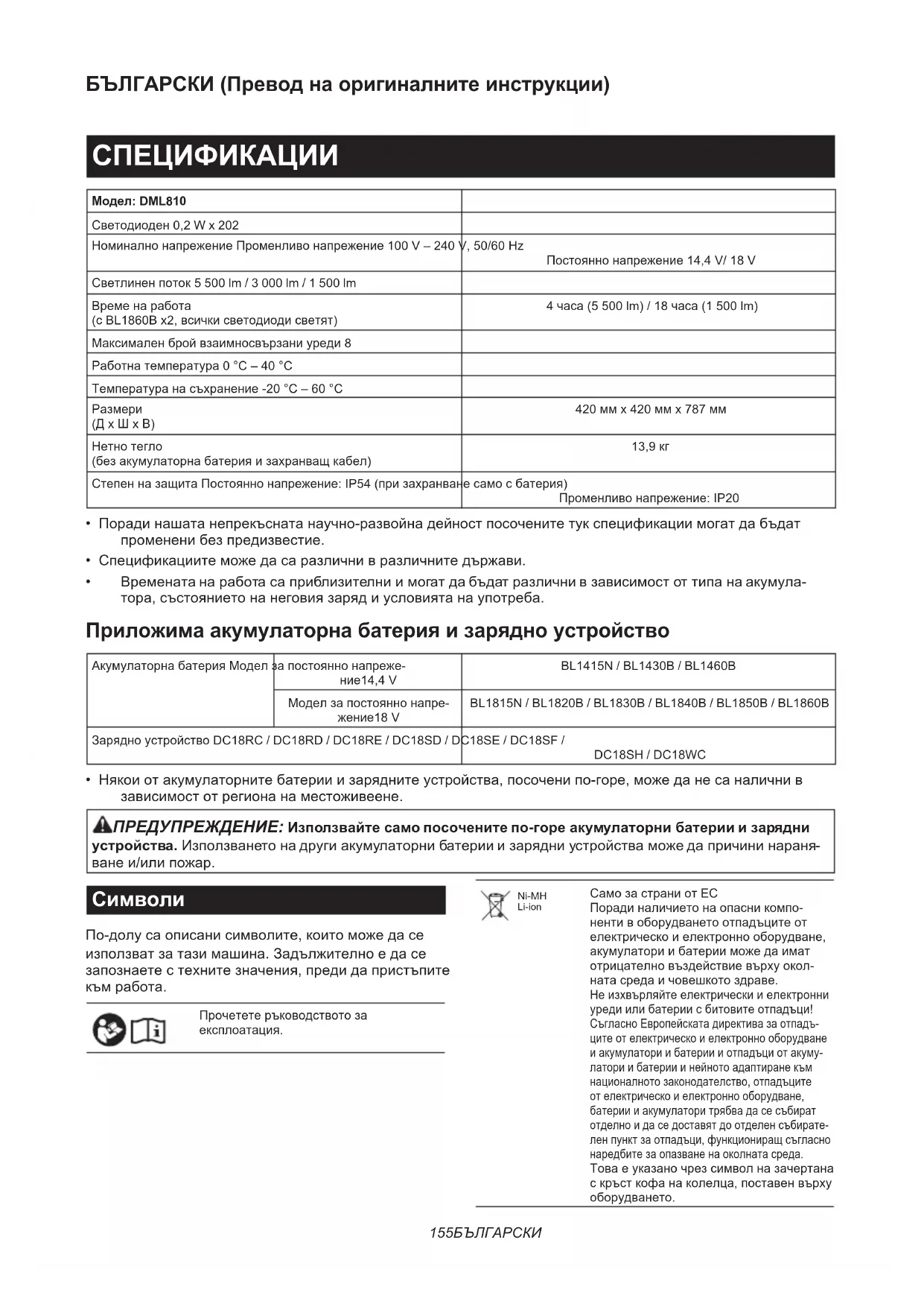 DML810 - Лампа MAKITA - Безплатно ръководство за потребителя
