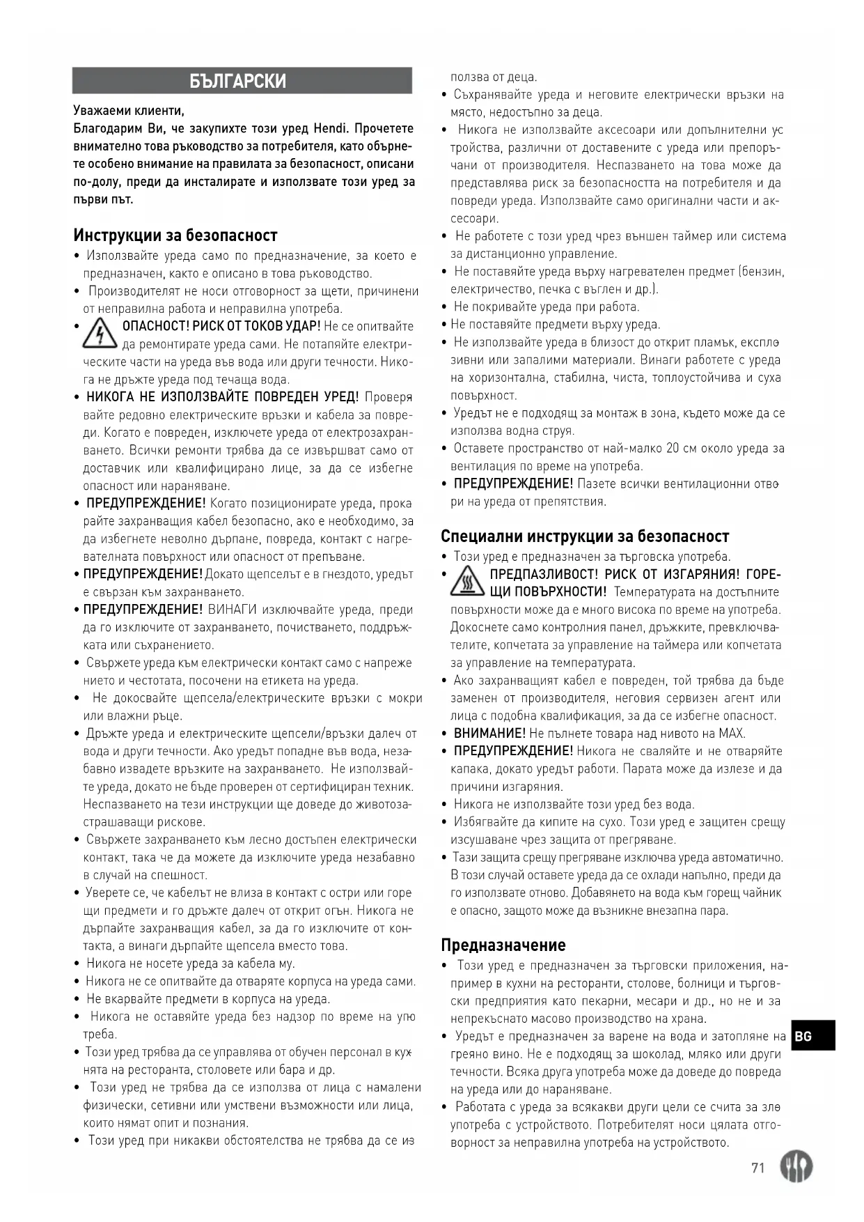 Уважаеми клиенти, Благодарим Ви, че закупихте този уред Hendi. Прочетете внимателно това ръководство за потребителя, като обърне