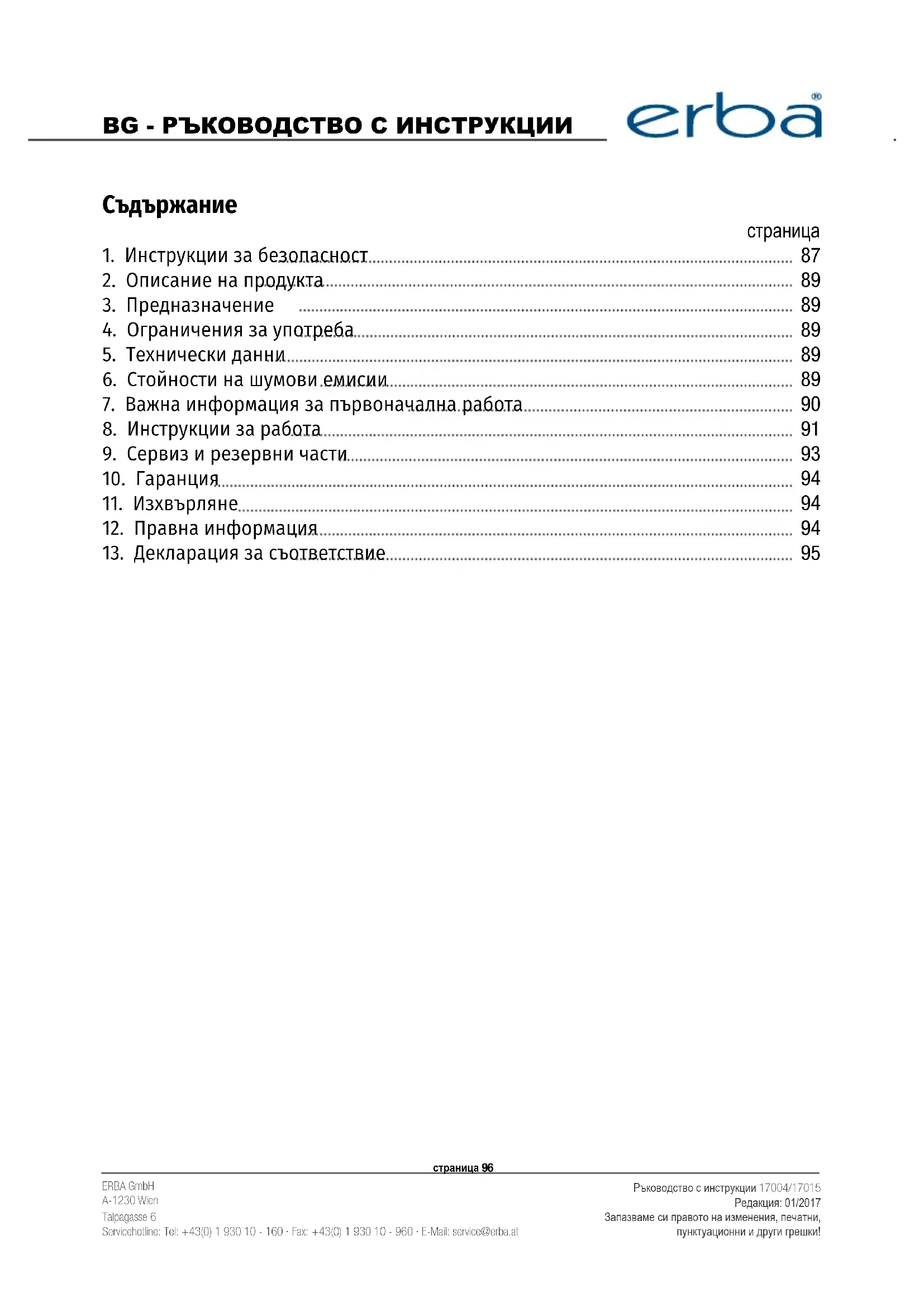 РЪКОВОДСТВО ЗА ПОТРЕБИТЕЛЯ 17015 Erba
