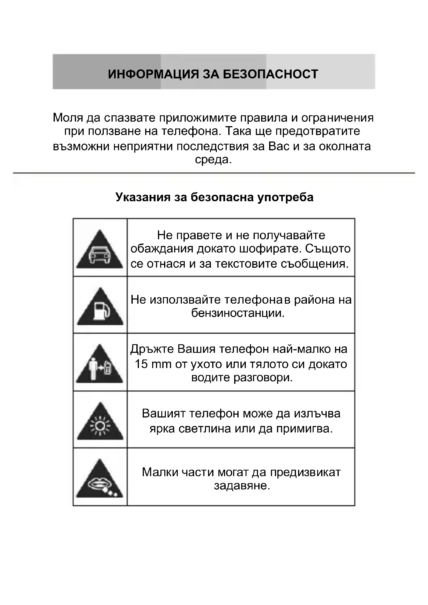 BGНе разглобявайте телефона си. Изключвайте телефона в близост до запалими материали или течности.