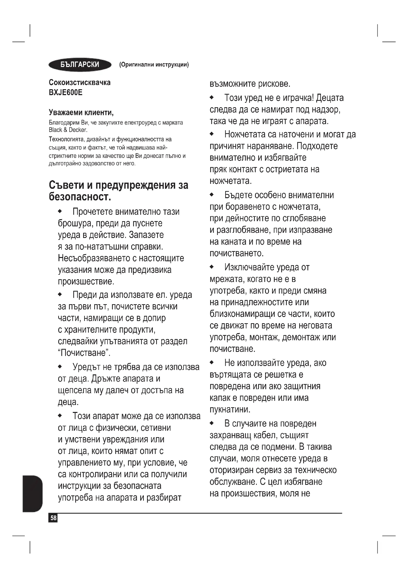 РЪКОВОДСТВО ЗА ПОТРЕБИТЕЛЯ BXJE600E BLACK & DECKER