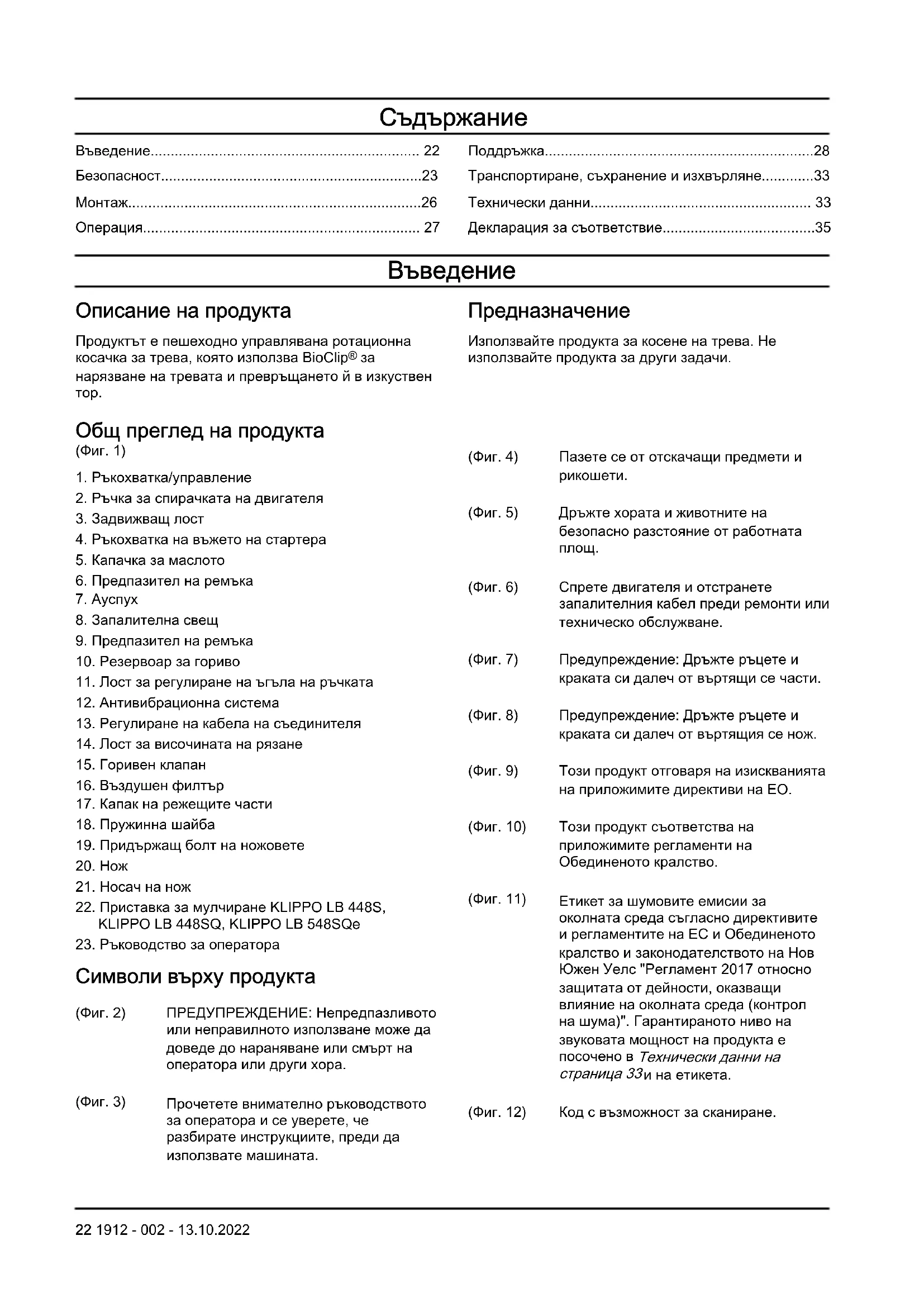 KLIPPO LB 448S, KLIPPO LB 453S, KLIPPO LB 448SQ, KLIPPO LB 453SQ, KLIPPO LB 548SQe Идентификация Серийни номера от 2022 и нататък отговаря напълно на следните директиви и регламенти на ЕС: Директива/регла-