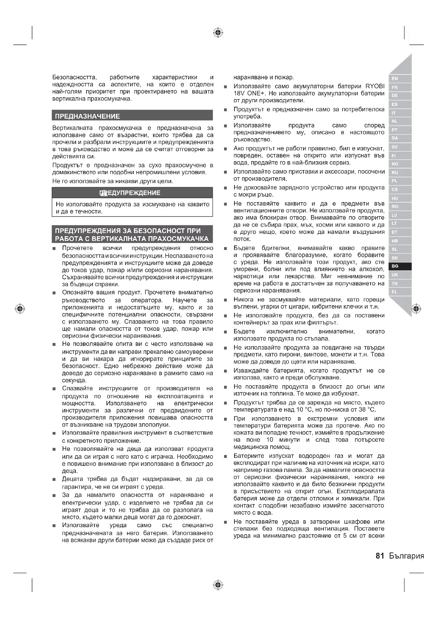One+ R18SV7 - Прахосмукачка RYOBI - Безплатно ръководство за потребителя