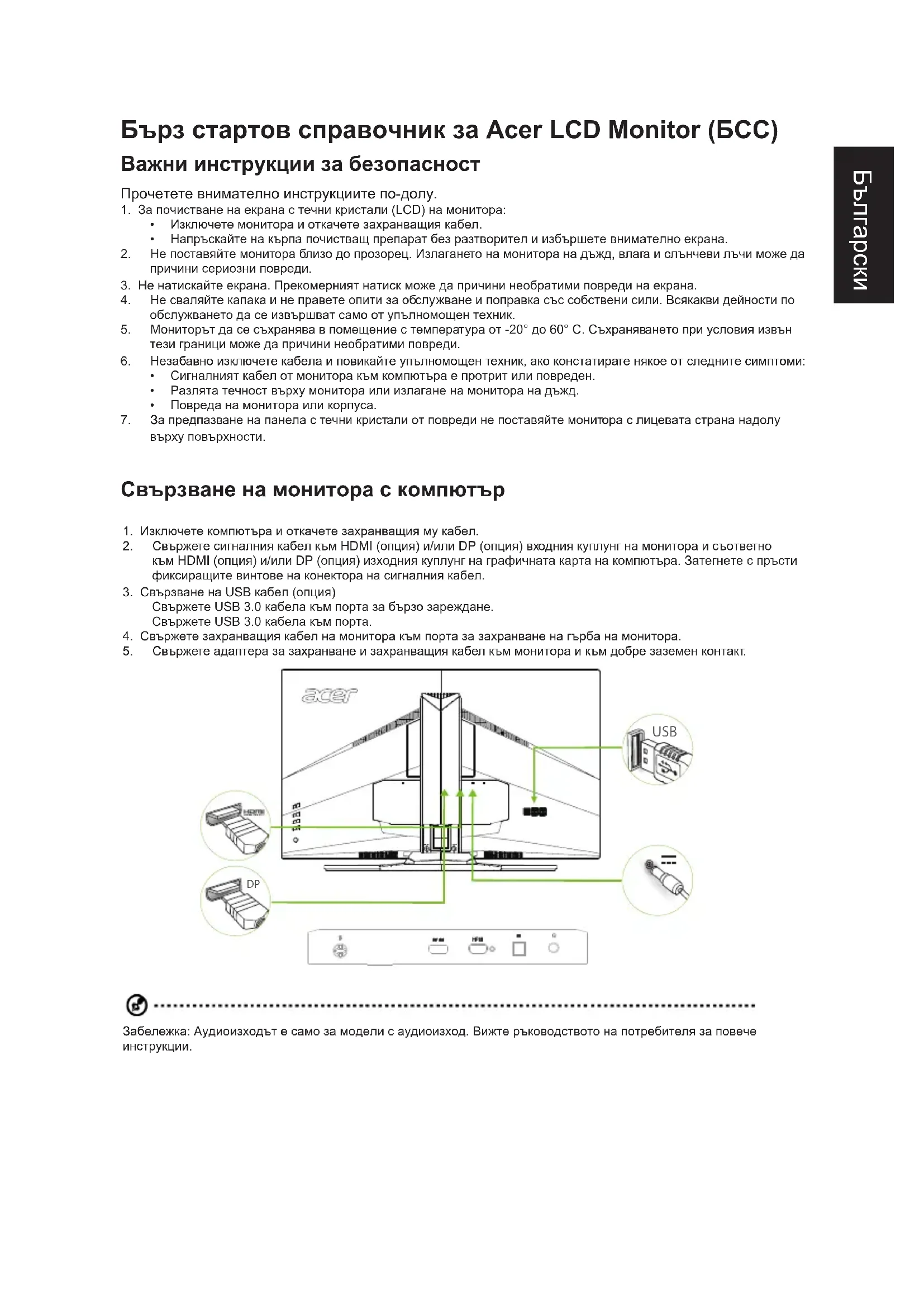 USB Забележка:Аудиоизходътесамозамоделисаудиоизход.Вижтеръководствотонапотребителязаповече инструкции.Български