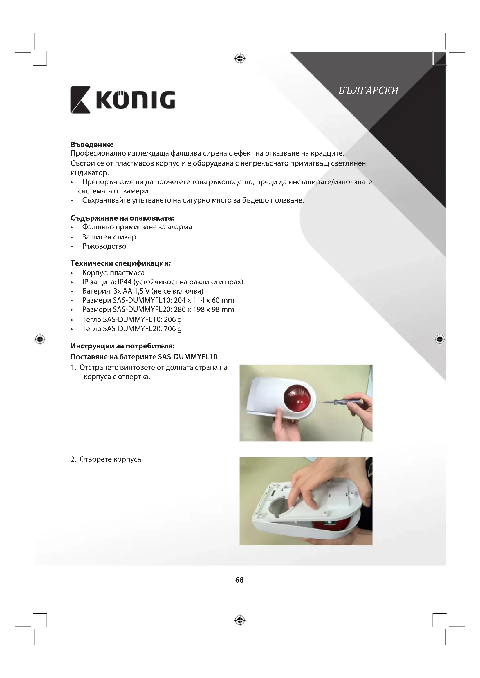 SASDUMMYFL20 - Алармена система KONIG - Безплатно ръководство за потребителя