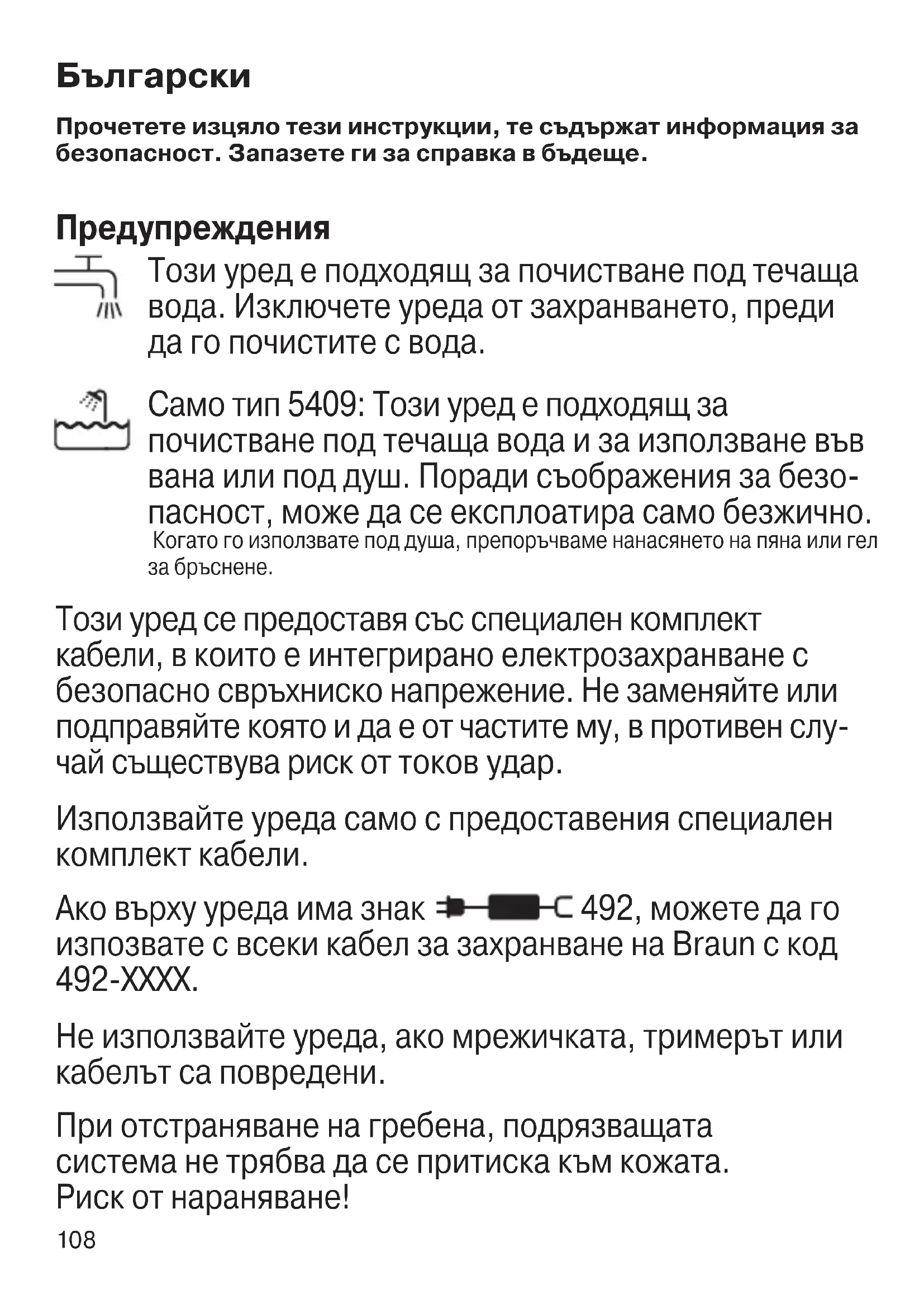 - Само тип 5408: Можете също да се бръснете, като свържете самоб- ръсначката към електрически контакт чрез специалния комплект