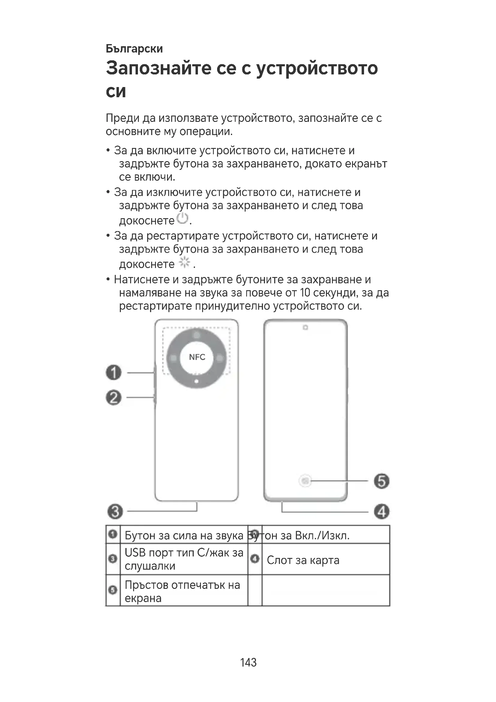 143• Имайте предвид, че зоната за NFC трябва да е в близост до други устройства или обекти при използване на функцията за NFC.