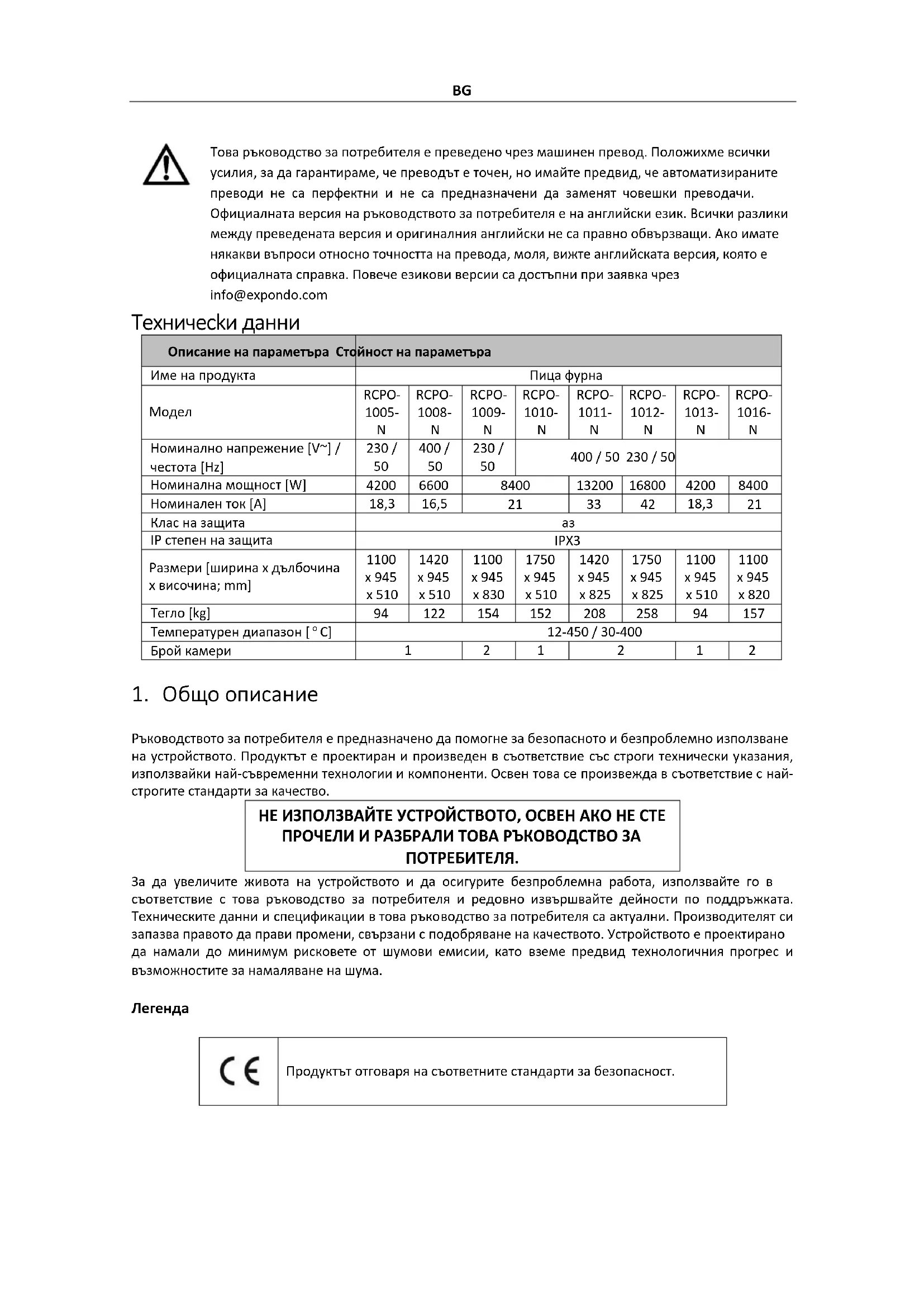 РЪКОВОДСТВО ЗА ПОТРЕБИТЕЛЯ RCPO1005N Royal Catering
