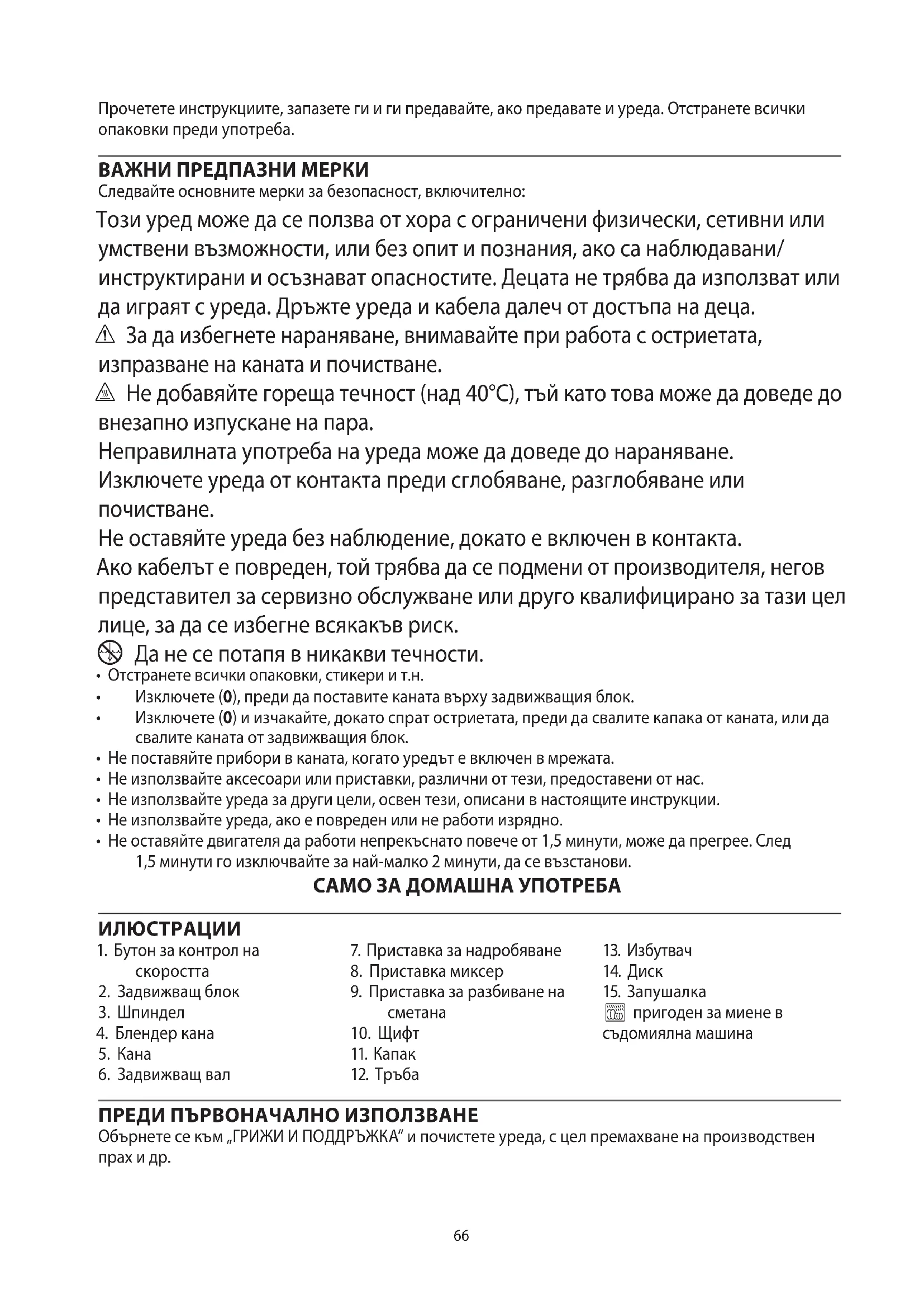 - Не оставяйте двигателя да работи непрекъснато повече от 1,5 минути, може да прегрее. След 1,5 минути го изключвайте за най-малко 2 минути, да се възстанови. САМО ЗА ДОМАШНА УПОТРЕБА