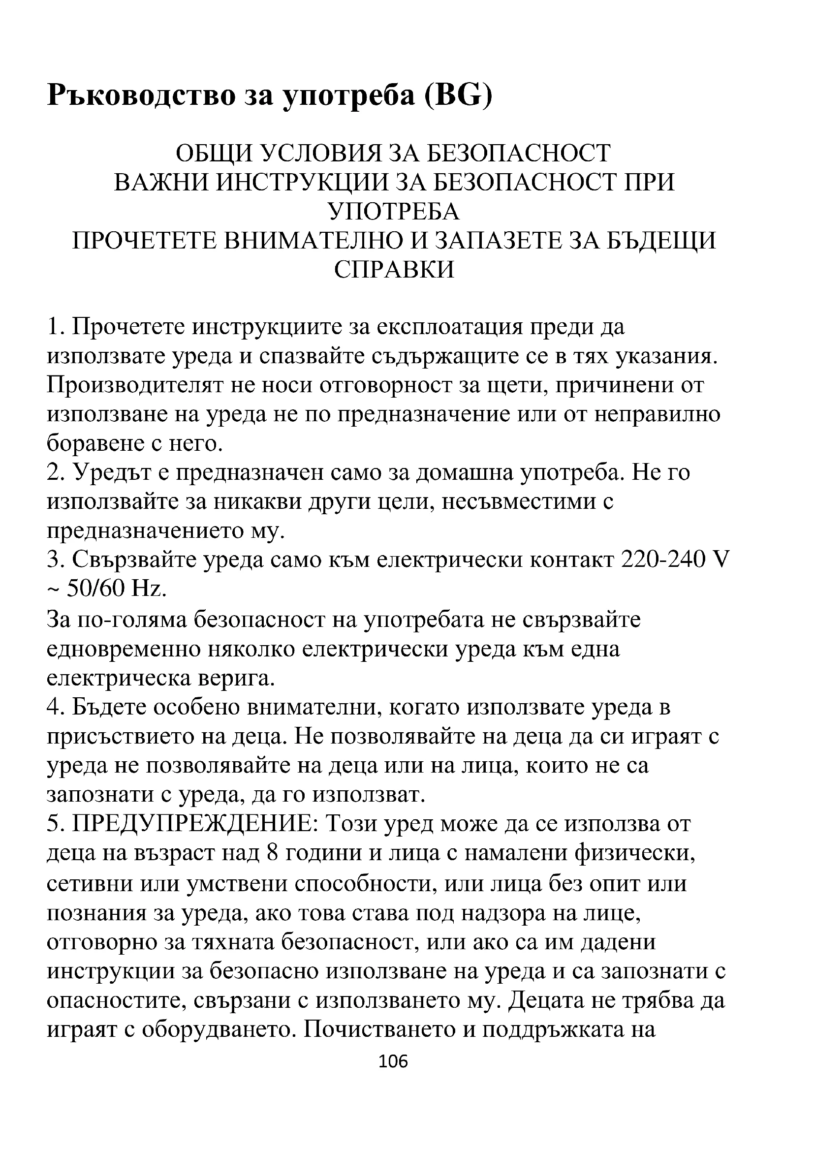 5. ПРЕДУПРЕЖДЕНИЕ: Този уред може да се използва от