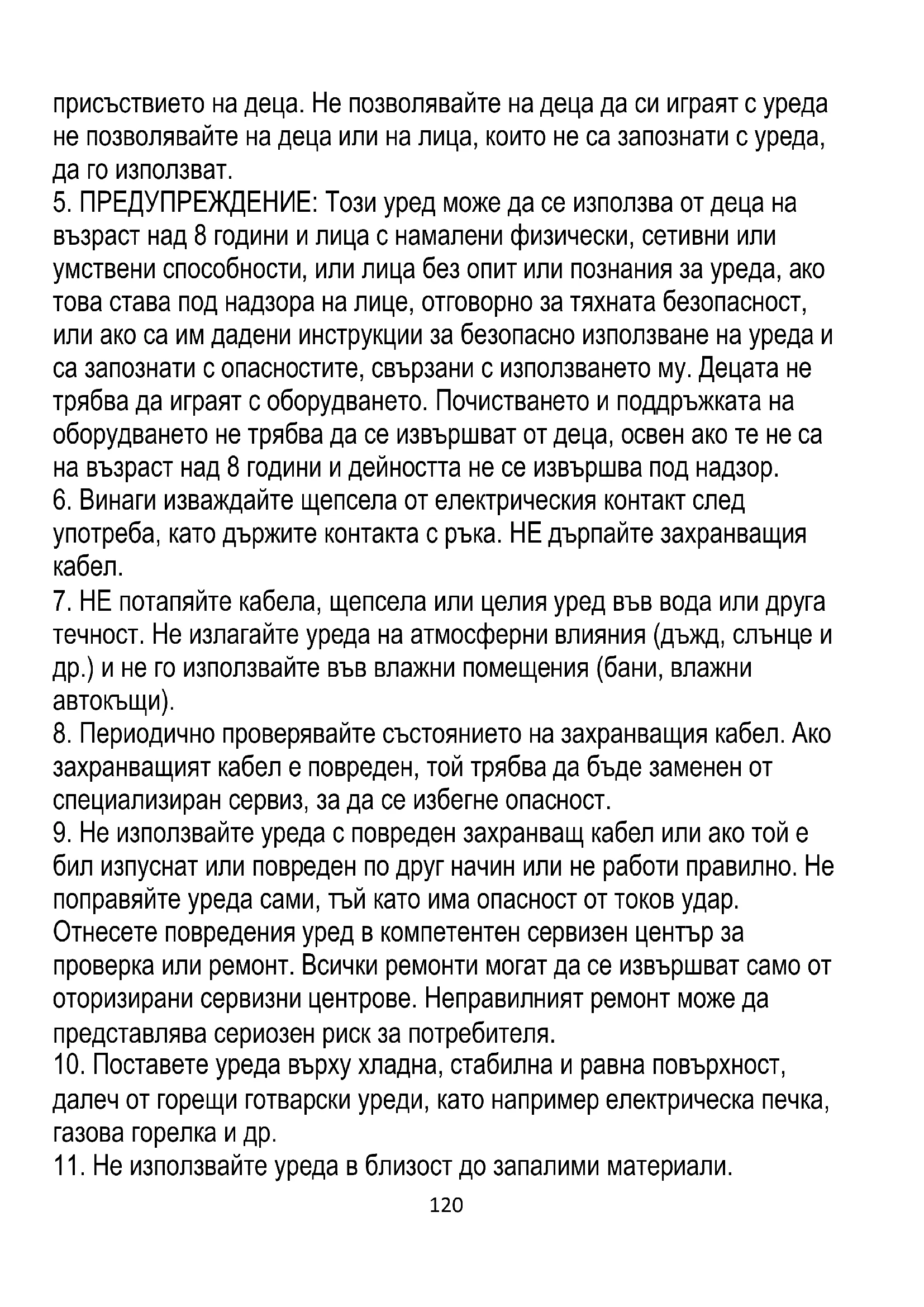 5. ПРЕДУПРЕЖДЕНИЕ: Този уред може да се използва от деца на