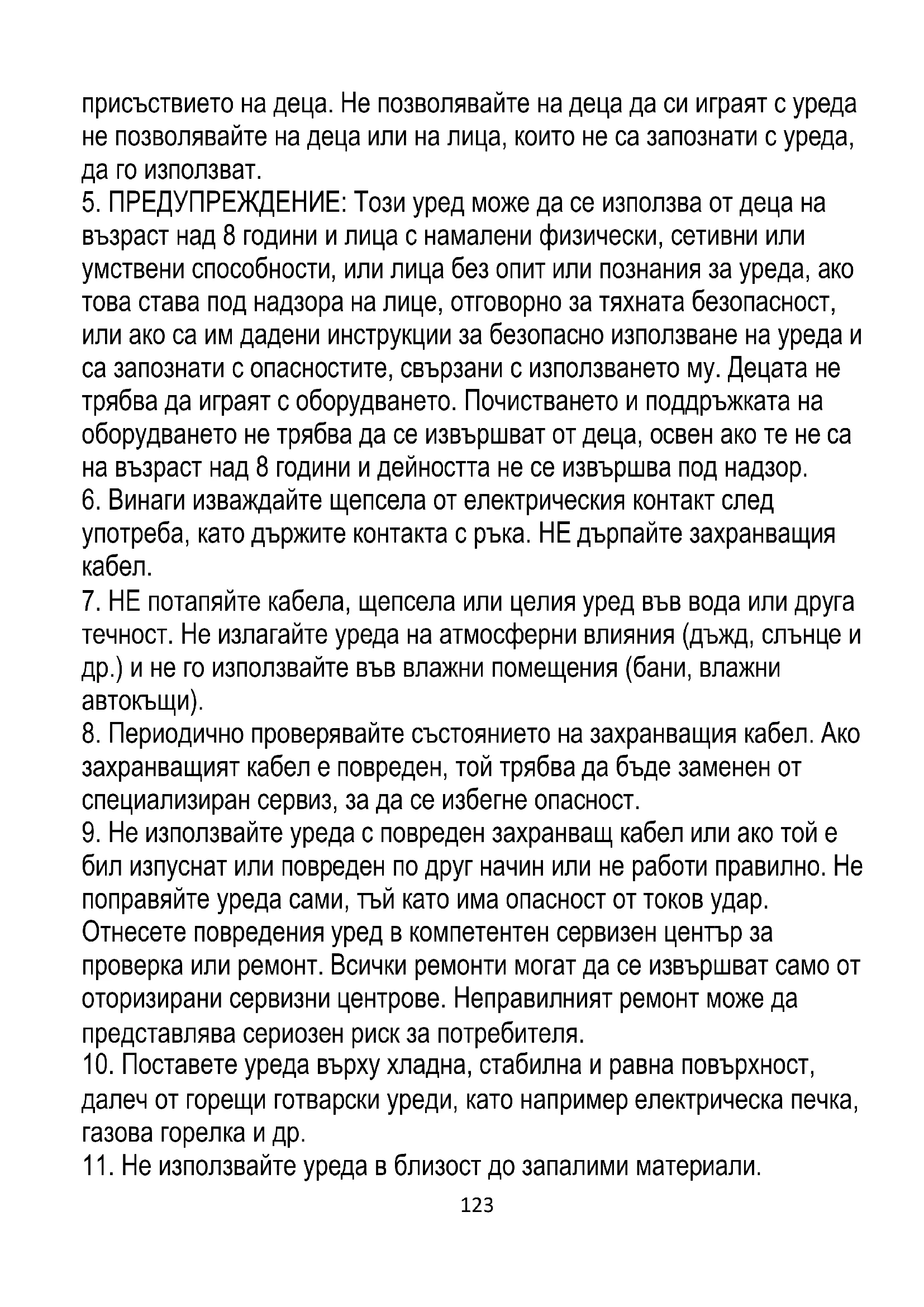 5. ПРЕДУПРЕЖДЕНИЕ: Този уред може да се използва от деца на