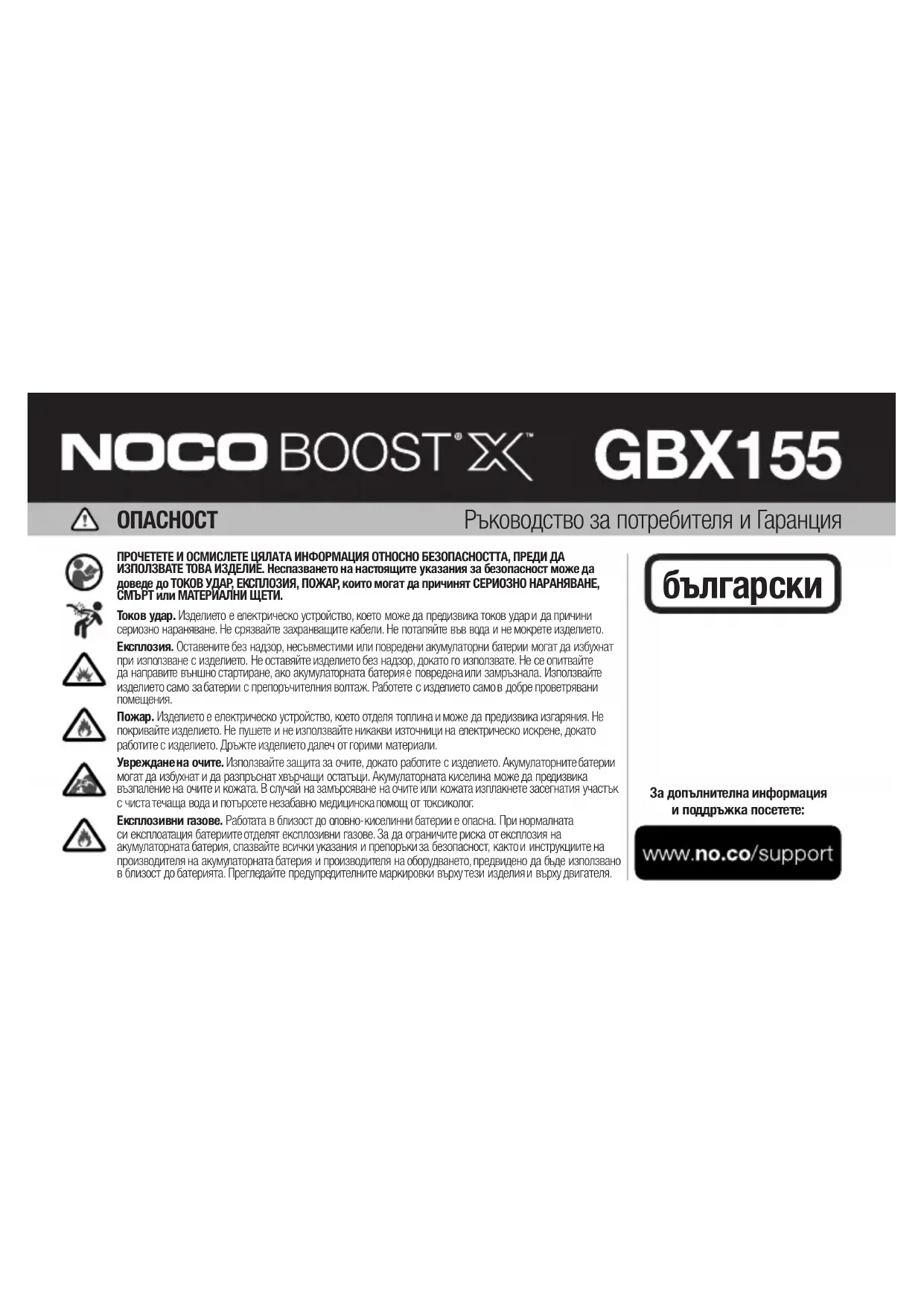 РЪКОВОДСТВО ЗА ПОТРЕБИТЕЛЯ Boost X GBX155 NOCO