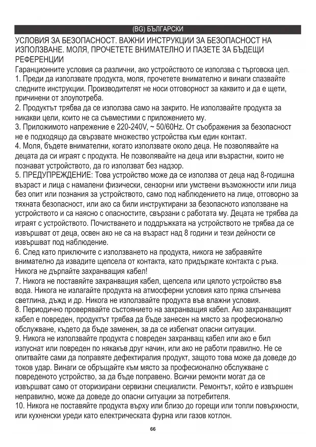 5. ПРЕДУПРЕЖДЕНИЕ: Това устройство може да се използва от деца над 8-годишна