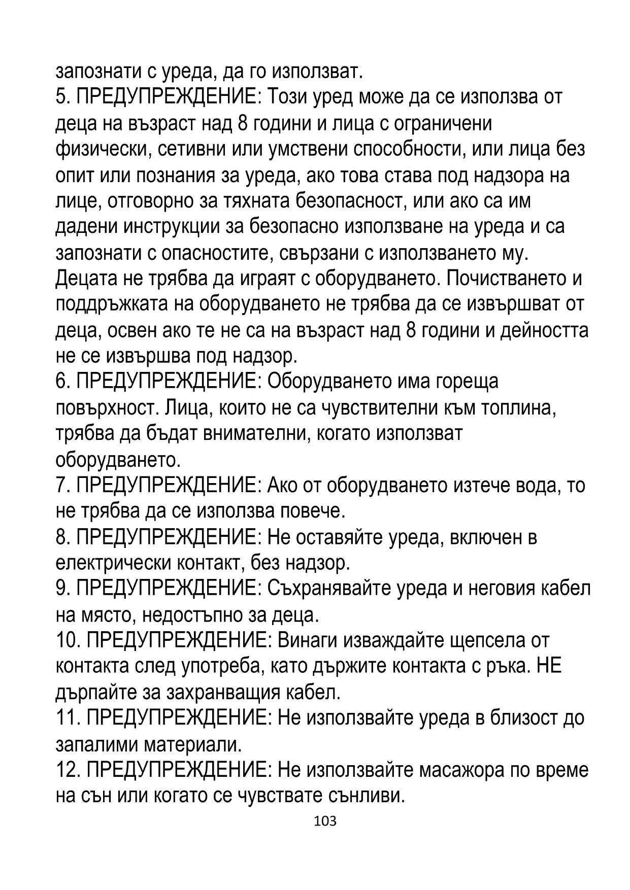 5. ПРЕДУПРЕЖДЕНИЕ: Този уред може да се използва от