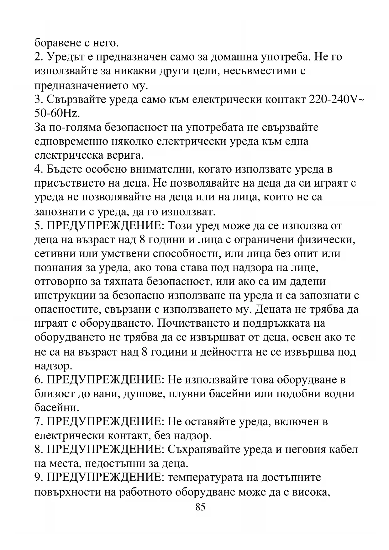 2. Уредът е предназначен само за домашна употреба. Не го