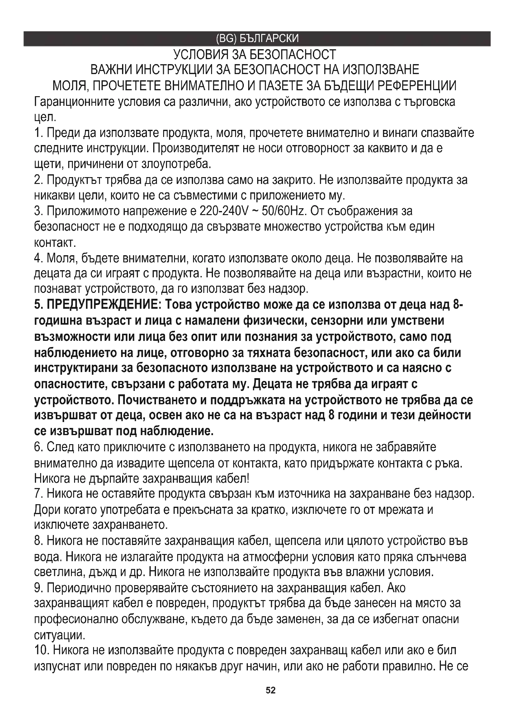 5. ПРЕДУПРЕЖДЕНИЕ: Това устройство може да се използва от деца над 8-