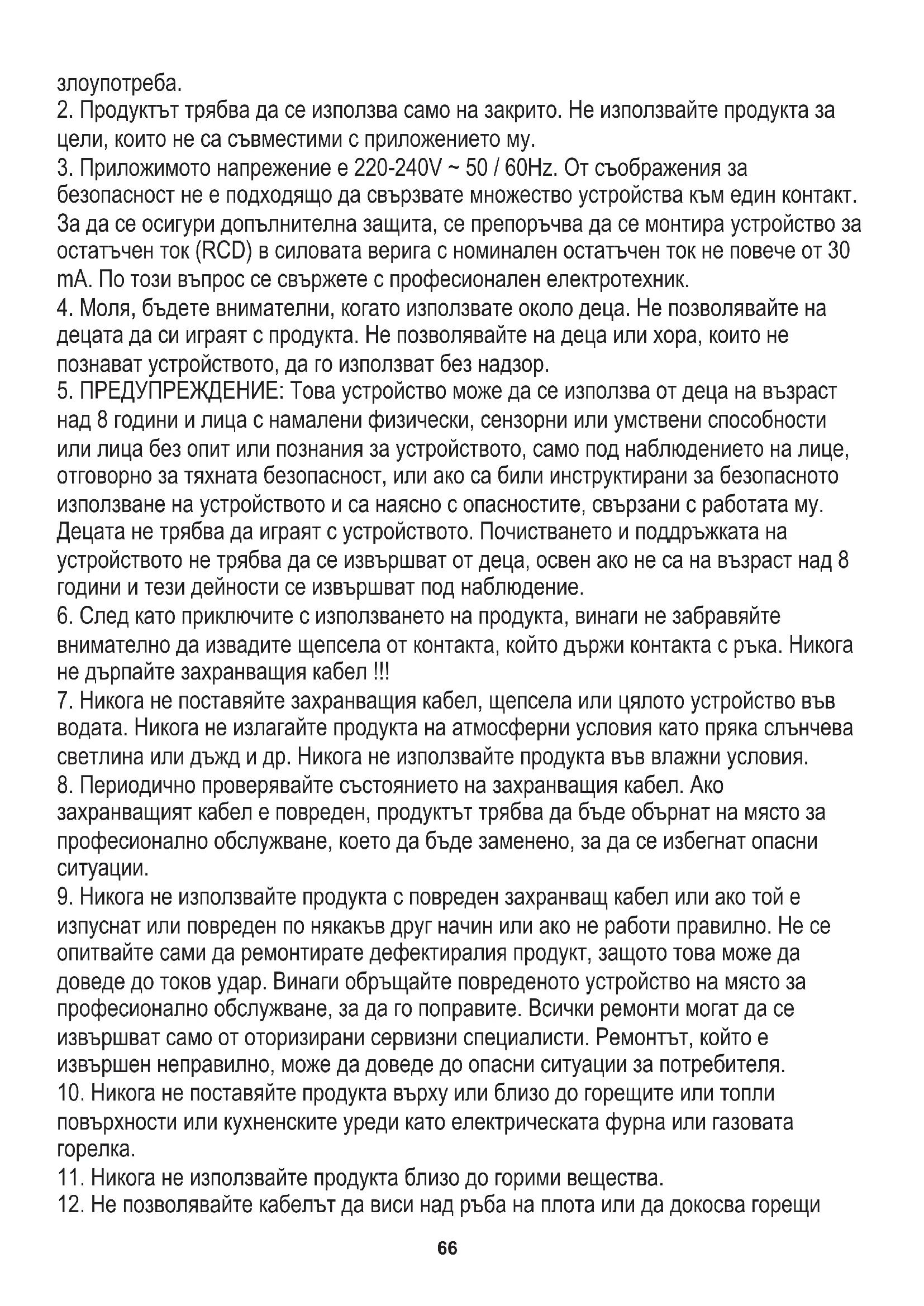 над 8 години и лица с намалени физически, сензорни или умствени способности или лица без опит или познания за устройството, само под наблюдението на лице, отговорно за тяхната безопасност, или ако са били инструктирани за безопасното използване на устройството и са наясно с опасностите, свързани с работата му. Децата не трябва да играят с устройството. Почистването и поддръжката на устройството не трябва да се извършват от деца, освен ако не са на възраст над 8 години и тези дейности се извършват под наблюдение.