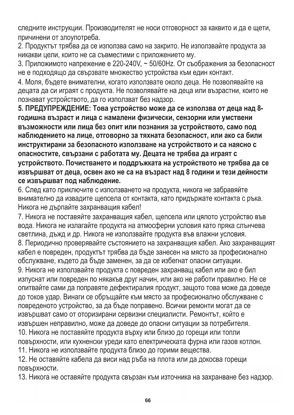 5. ПРЕДУПРЕЖДЕНИЕ: Това устройство може да се използва от деца над 8-