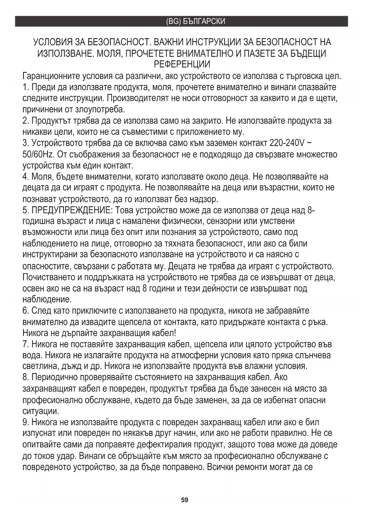 5. ПРЕДУПРЕЖДЕНИЕ: Това устройство може да се използва от деца над 8-