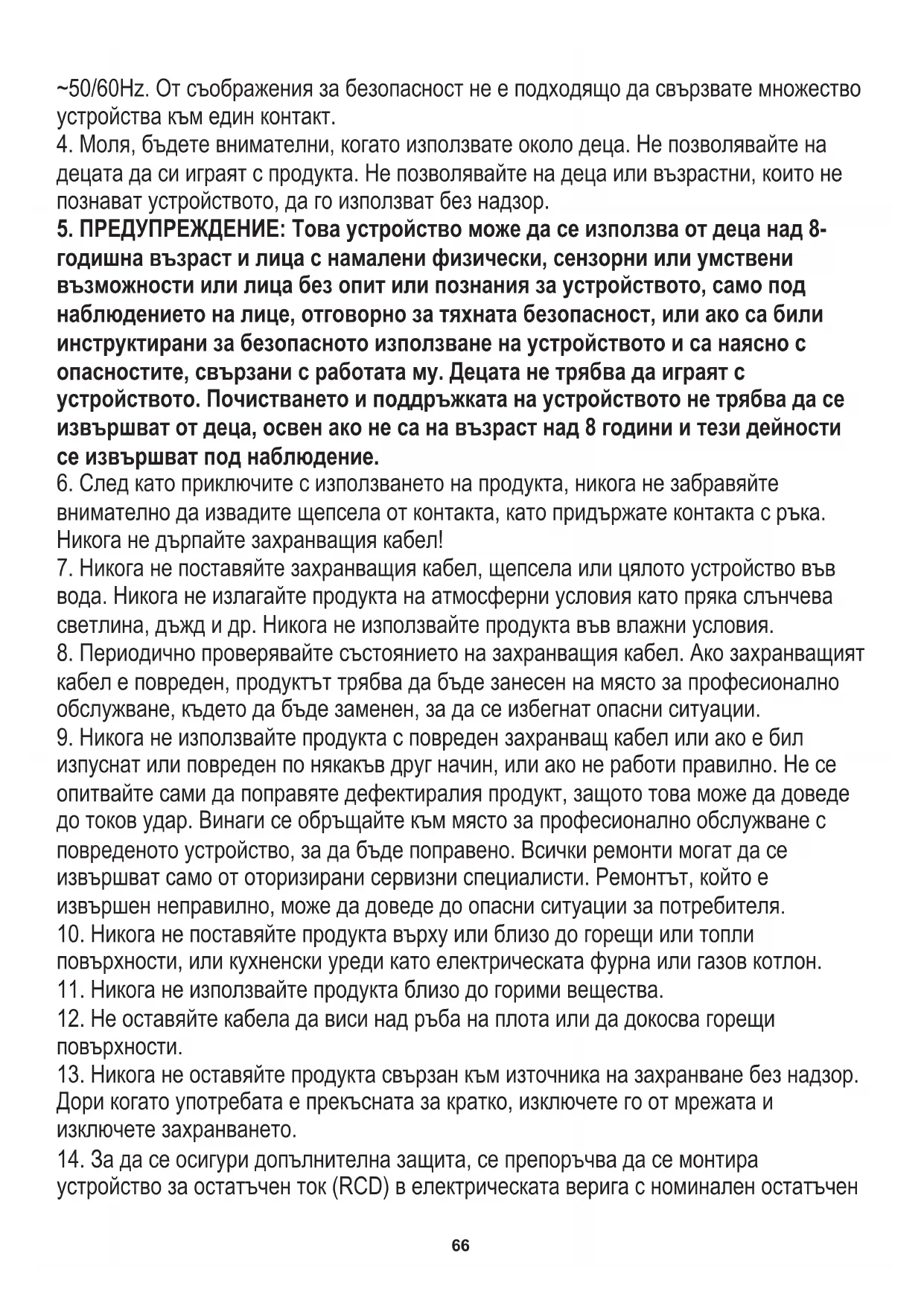 5. ПРЕДУПРЕЖДЕНИЕ: Това устройство може да се използва от деца над 8-