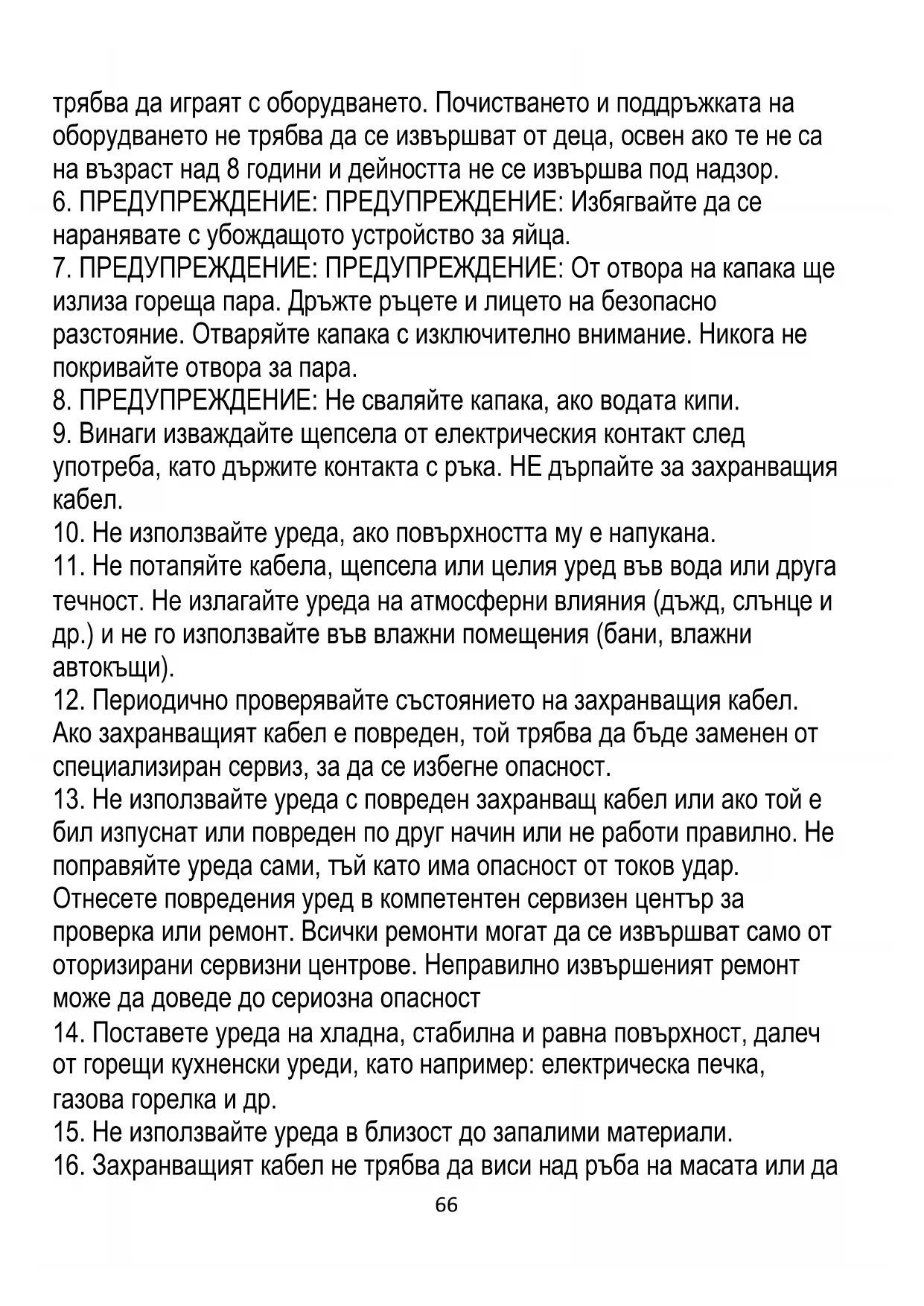 19. Продуктът е предназначен само за готвене на яйца.