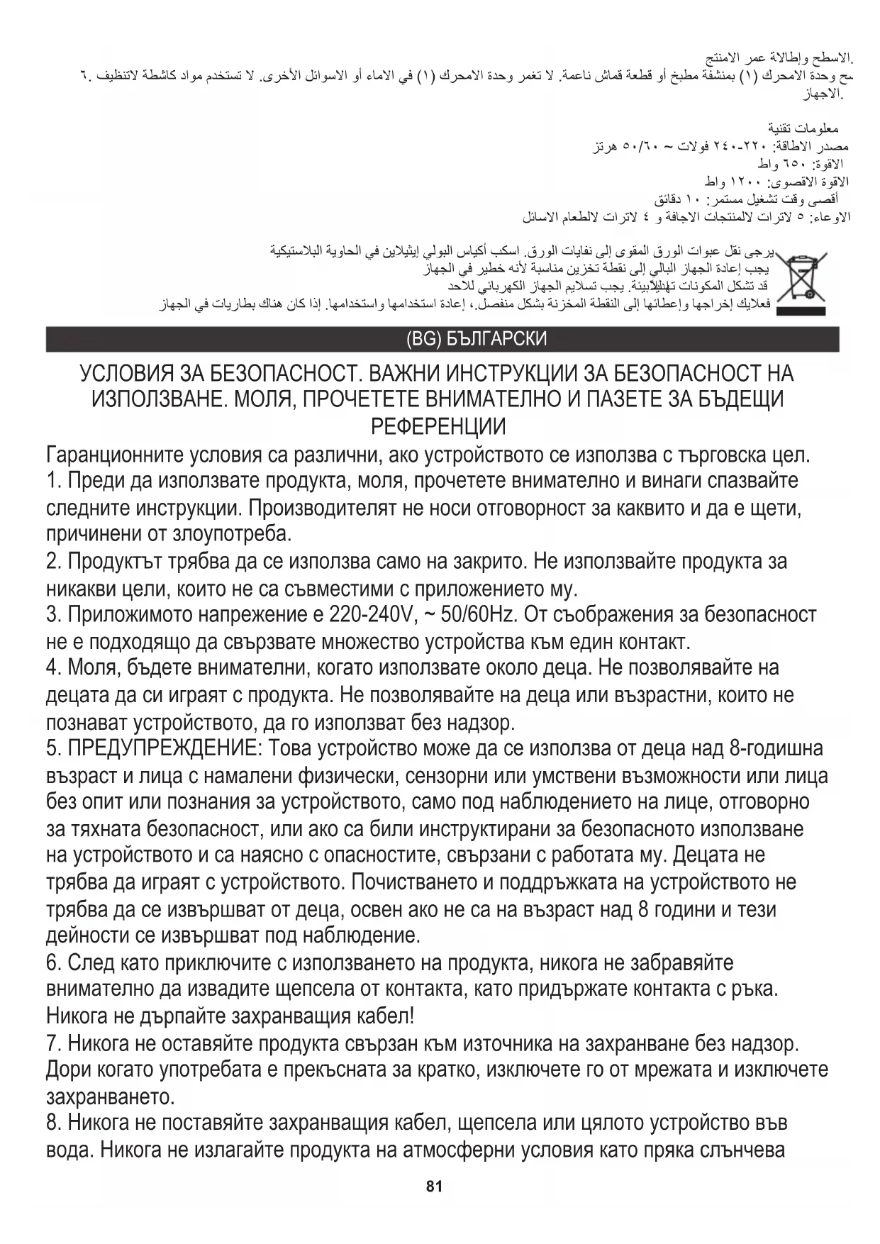5. ПРЕДУПРЕЖДЕНИЕ: Това устройство може да се използва от деца над 8-годишна