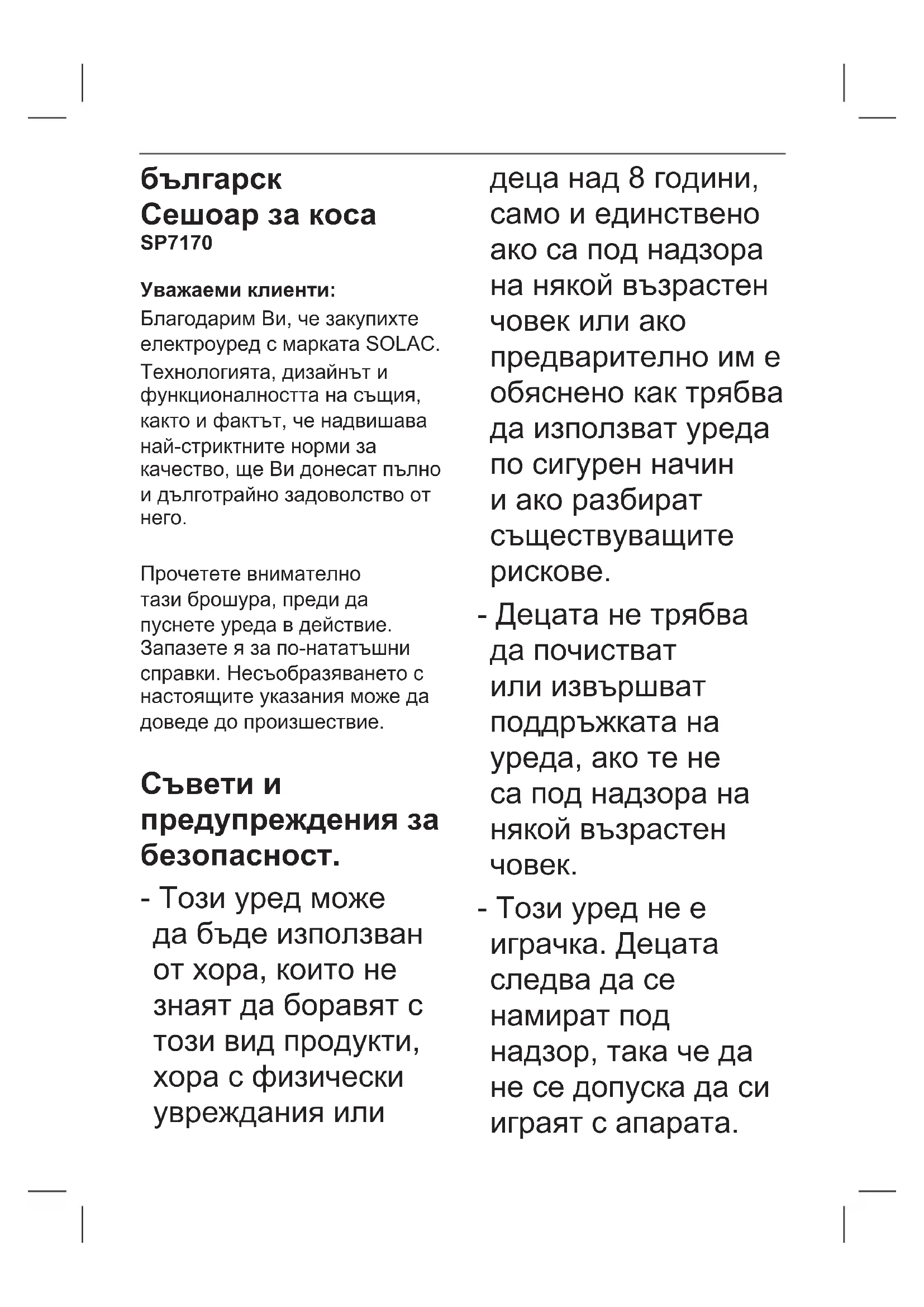 РЪКОВОДСТВО ЗА ПОТРЕБИТЕЛЯ Expert 2600 Tourmaline SP7170 SOLAC