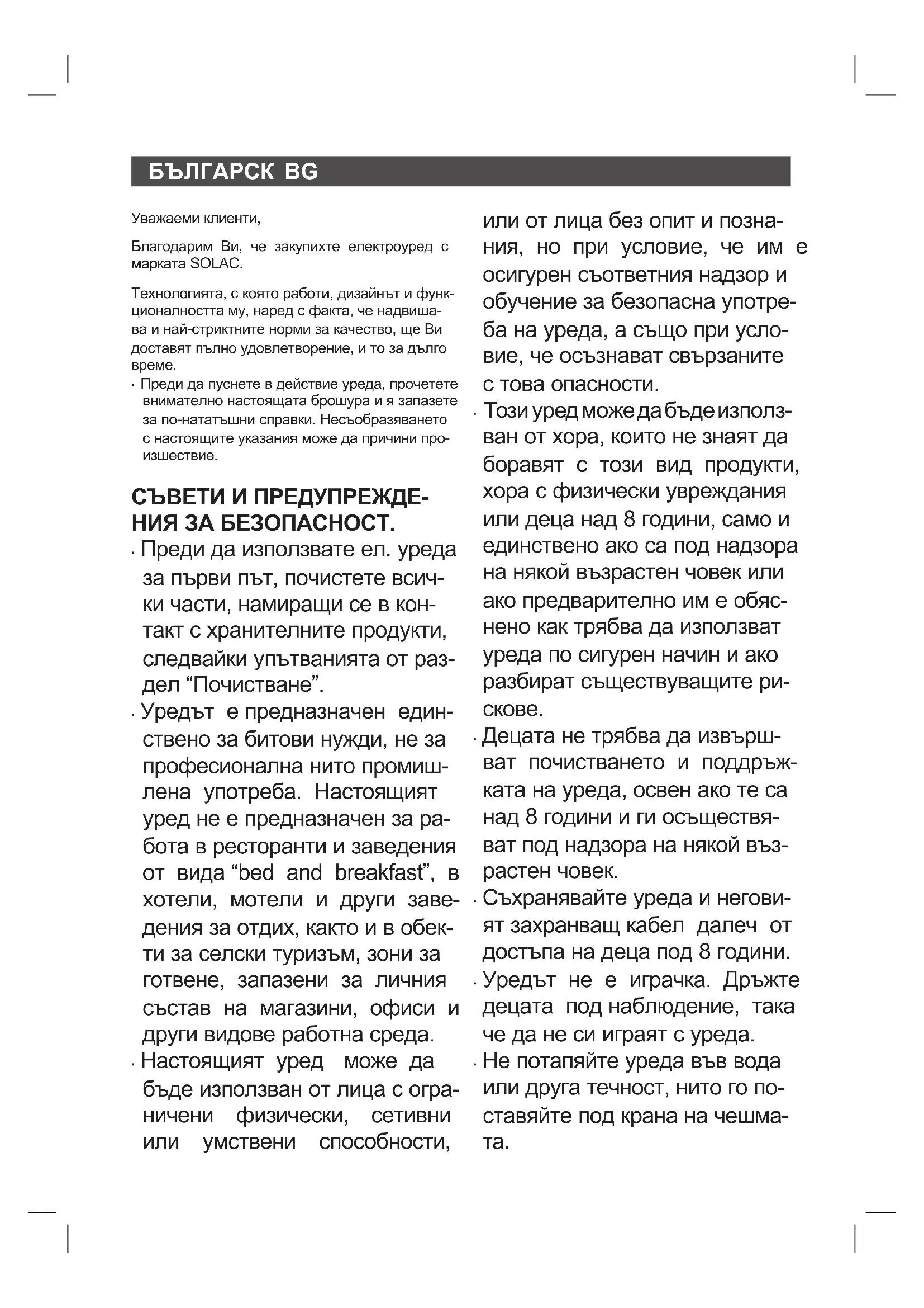 - Преди да пуснете в действие уреда, прочетете внимателно настоящата брошура и я запазете за по-нататъшни справки. Несъобразяването с настоящите указания може да причини про-