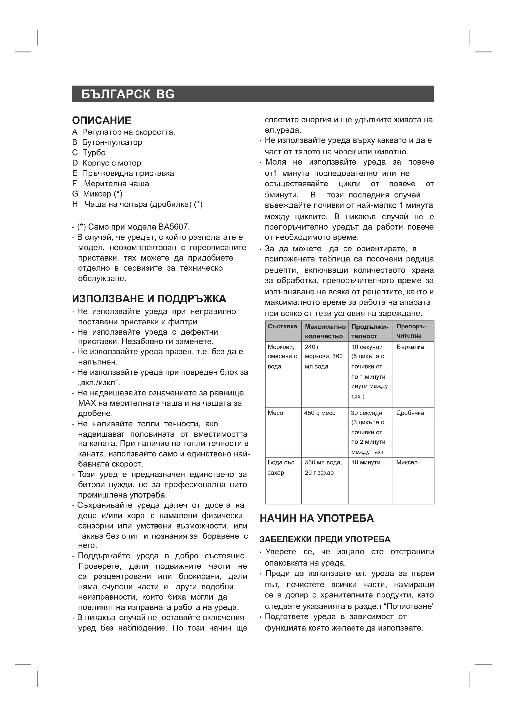 - (*) Само при моделa BA5607.• В случай, че уредът, с който разполагате е модел, неокомплектован с гореописаните приставки, тях можете да придобиете отделно в сервизите за техническо обслужване. ИЗПОЛЗВАНЕ И ПОДДРЪЖКА