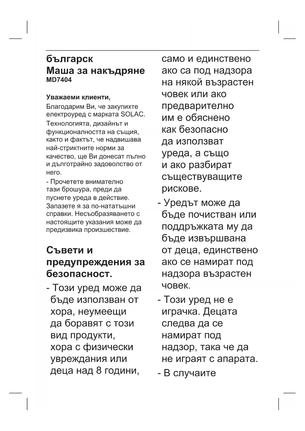 предупреждения за безопасност. - Този уред може да бъде използван от хора, неумеещи да боравят с този вид продукти, хора с физически увреждания или деца над 8 години, само и единствено ако са под надзора на някой възрастен човек или ако предварително им е обяснено как безопасно да използват уреда, а също и ако разбират съществуващите