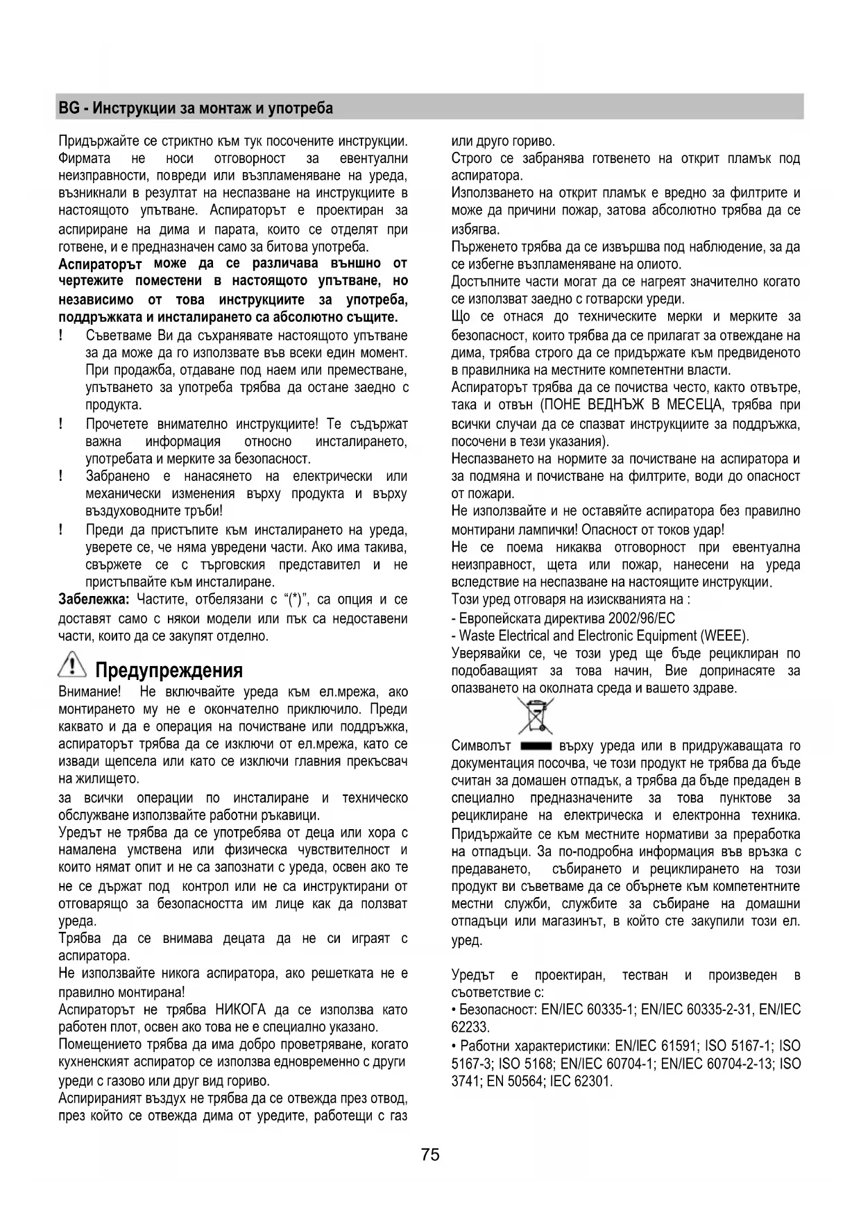 Този уред отговаря на изискванията на : - Европейската директива 2002/96/ЕС - Waste Electricаl and Electronic Equipment (WEEE). Уверявайки се, че този уред ще бъде рециклиран по подобаващият за това начин, Вие допринасяте за опазването на околната среда и вашето здраве.