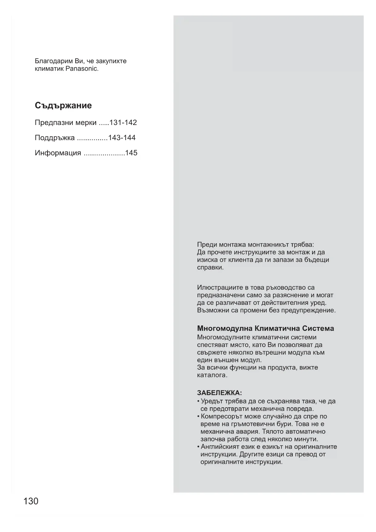 Благодарим Ви, че закупихте климатик Panasonic. Преди монтажа монтажникът трябва: Да прочете инструкциите за монтаж и да изиска от клиента да ги запази за бъдещи