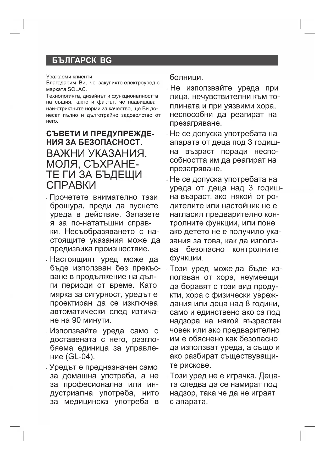 РЪКОВОДСТВО ЗА ПОТРЕБИТЕЛЯ CT8632 SOLAC