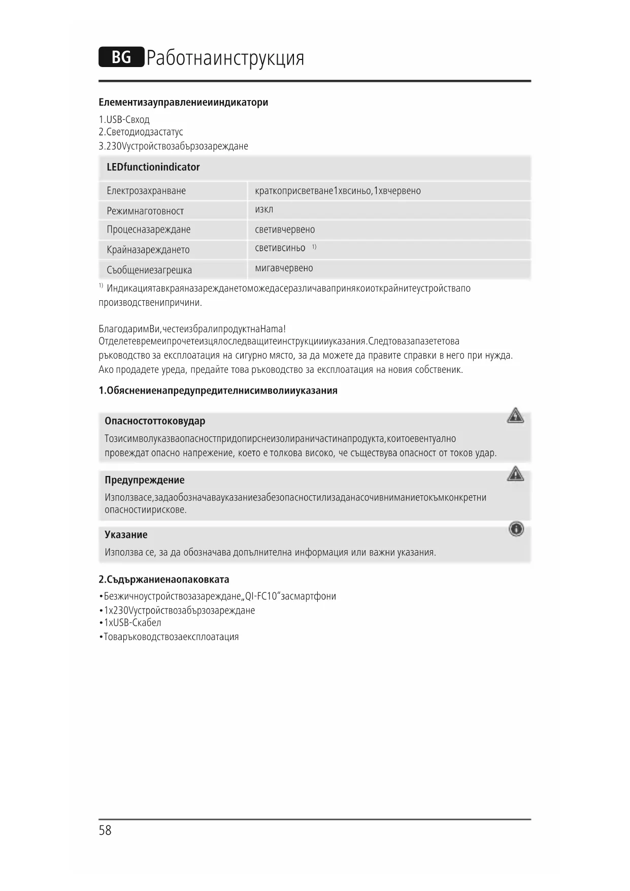 Индикацията в края на зареждането може да се различава при някои от крайните устройства по производствени причини. Благодарим Ви, че сте избрали продукт на Hama! Отделете време и прочете изцяло следващите инструкции и указания. След това запазете това ръководство за експлоатация на сигурно място, за да можете да правите справки в него при нужда. Ако продадете уреда, предайте това ръководство за експлоатация на новия собственик.