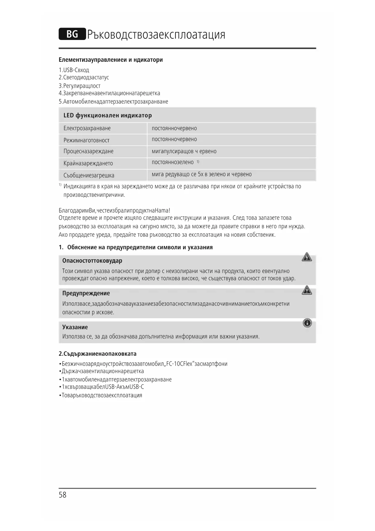 Индикацията вкрая на зареждането може да се различава при някои от крайните устройства по производствени причини. Благодарим Ви, че сте избрали продукт на Hama! Отделете време ипрочете изцяло следващите инструкции иуказания. След това запазете това ръководство за експлоатация на сигурно място, за да можете да правите справки внего при нужда. Ако продадете уреда, предайте това ръководство за експлоатация на новия собственик.