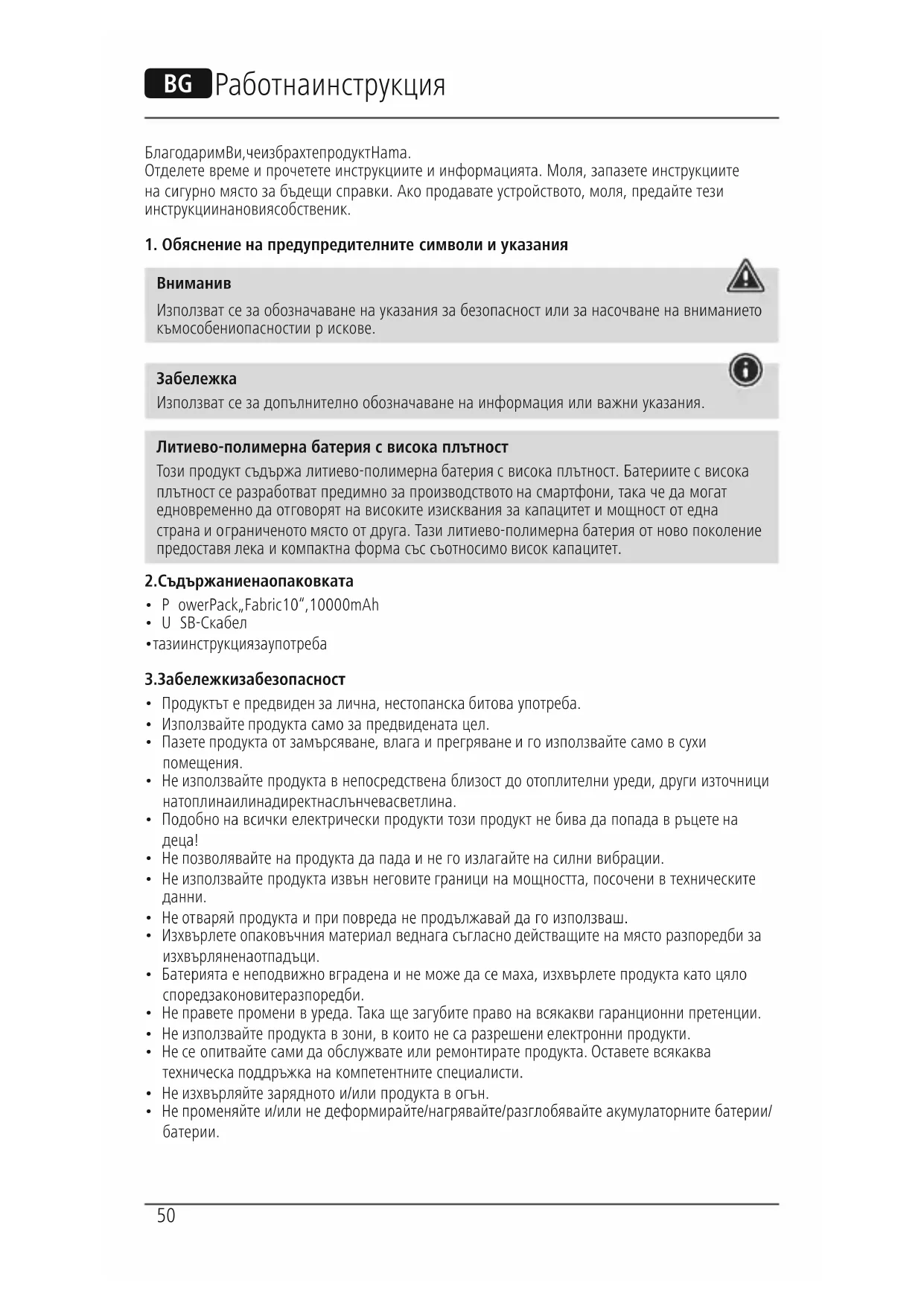 Fabric 10 00187260 - Преносима батерия HAMA - Безплатно ръководство за потребителя