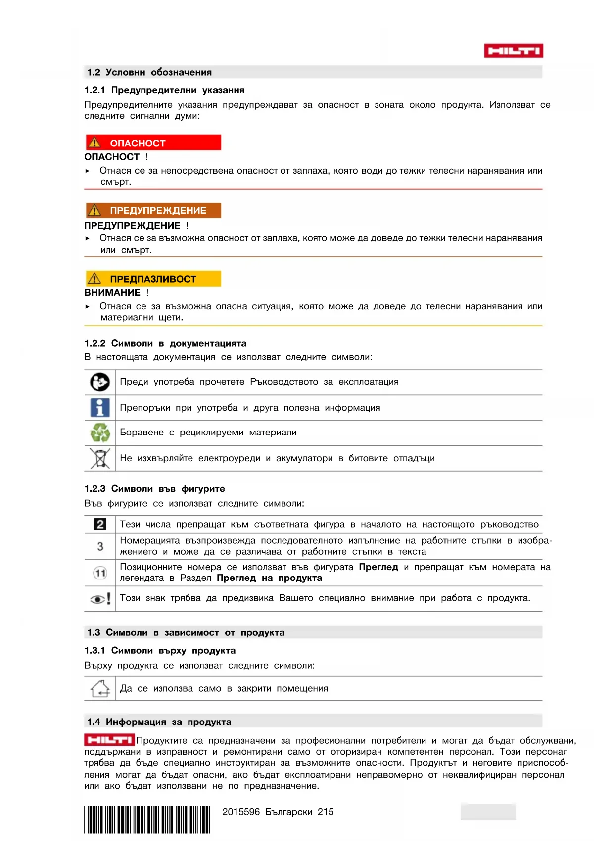 1.2.1 Предупредителни указания