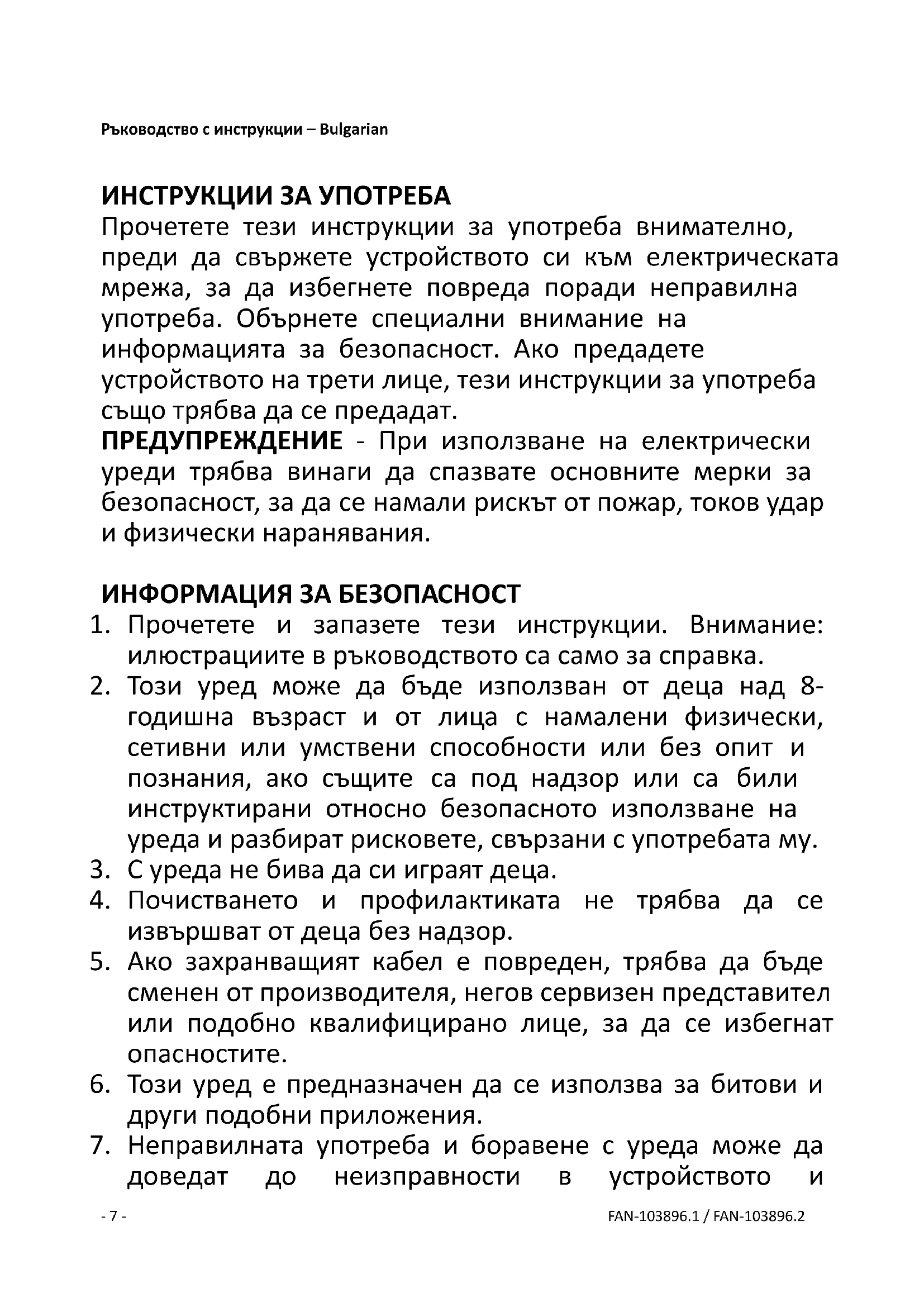 продължително време.- 10 - FAN-103896.1 / FAN-103896.2 ОПИСАНИЕ НА ЧАСТИТЕ