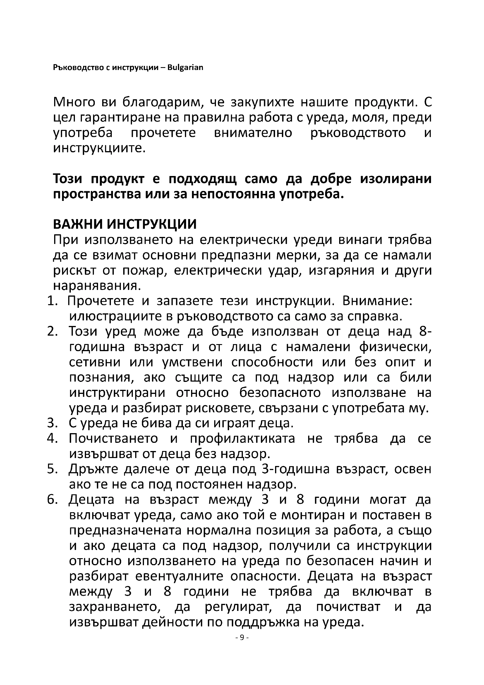9. Този уред е предназначен да се използва за битови и