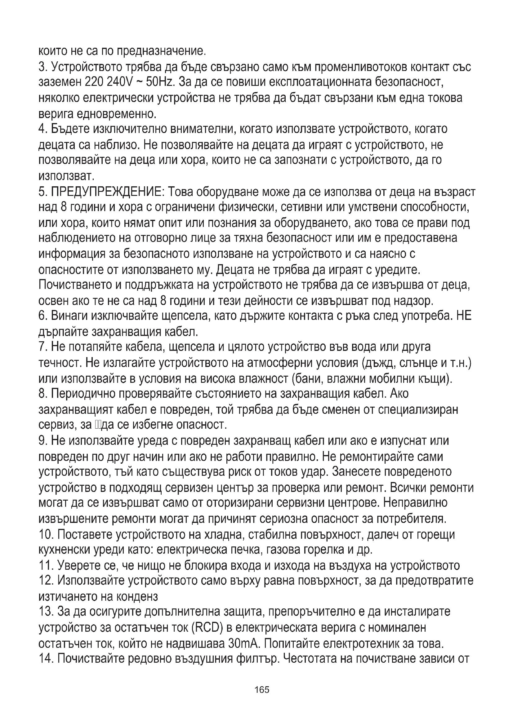 2. Устройството е само за домашна употреба. Не използвайте за други цели,165