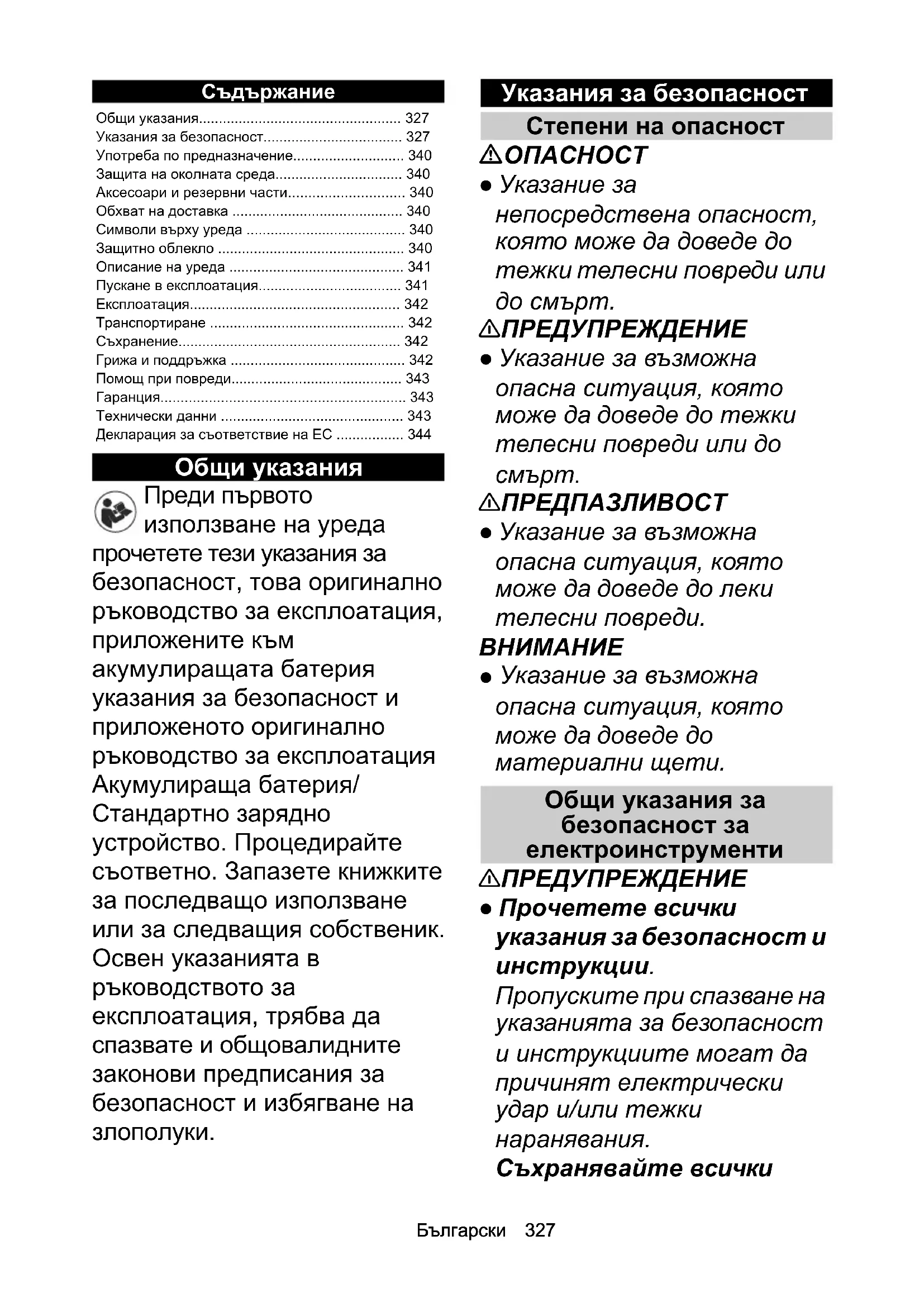 - Указания за безопасност p. 327