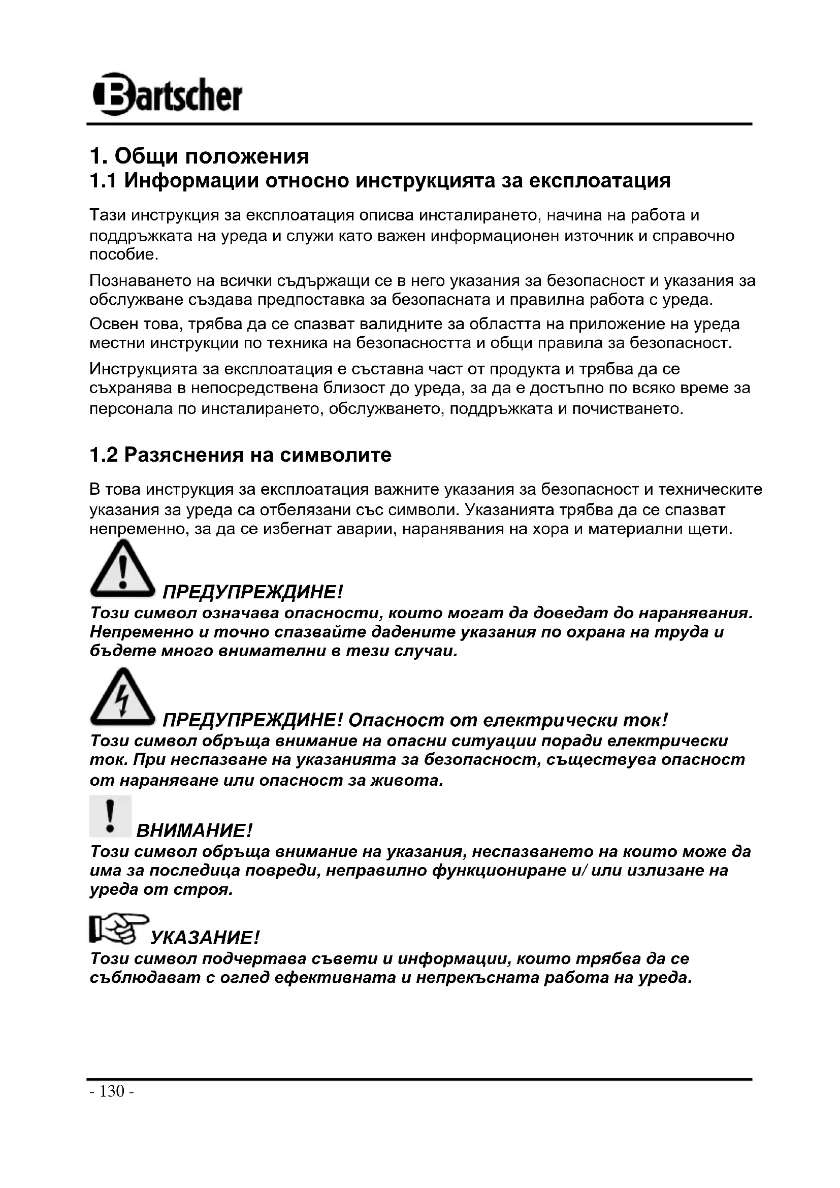 1.1 Информации относно инструкцията за експлоатация .................................. 130
