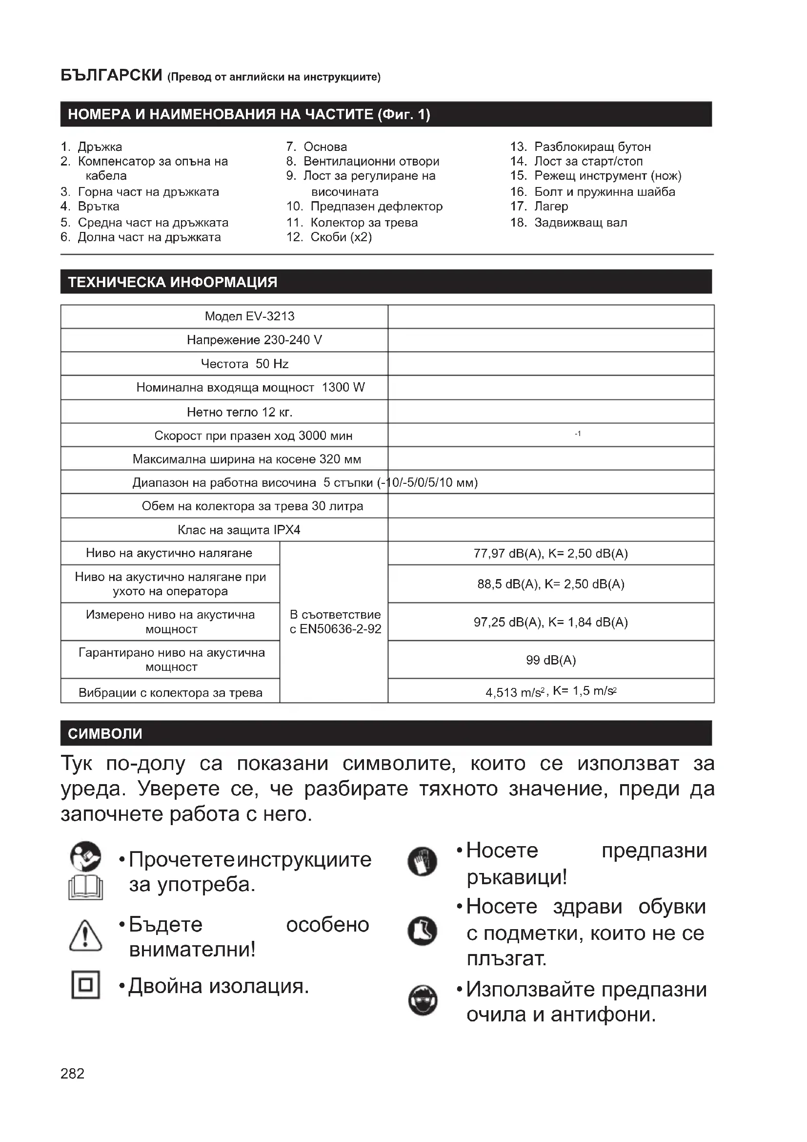 РЪКОВОДСТВО ЗА ПОТРЕБИТЕЛЯ EV3213 DOLMAR