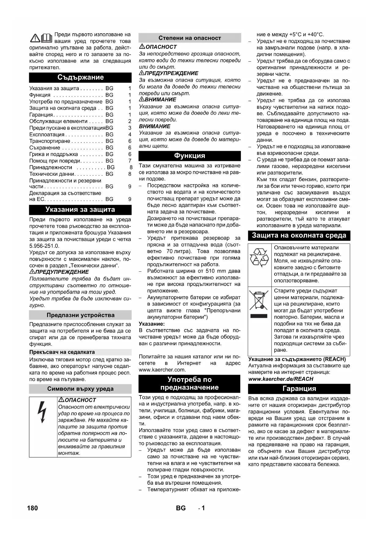 Chairman of the Board of Management Director Regulatory Affairs & Certification 179SR- 1 Преди първото използване на вашия уред прочетете това оригинално упътване за работа, дейст- вайте според него и го запазете за по- късно използване или за следващия притежател. Преди първото използване на уреда прочетете това ръководство за експлоа- тация и приложената брошура Указания за защита за почистващи уреди с четка 5.956-251.0.