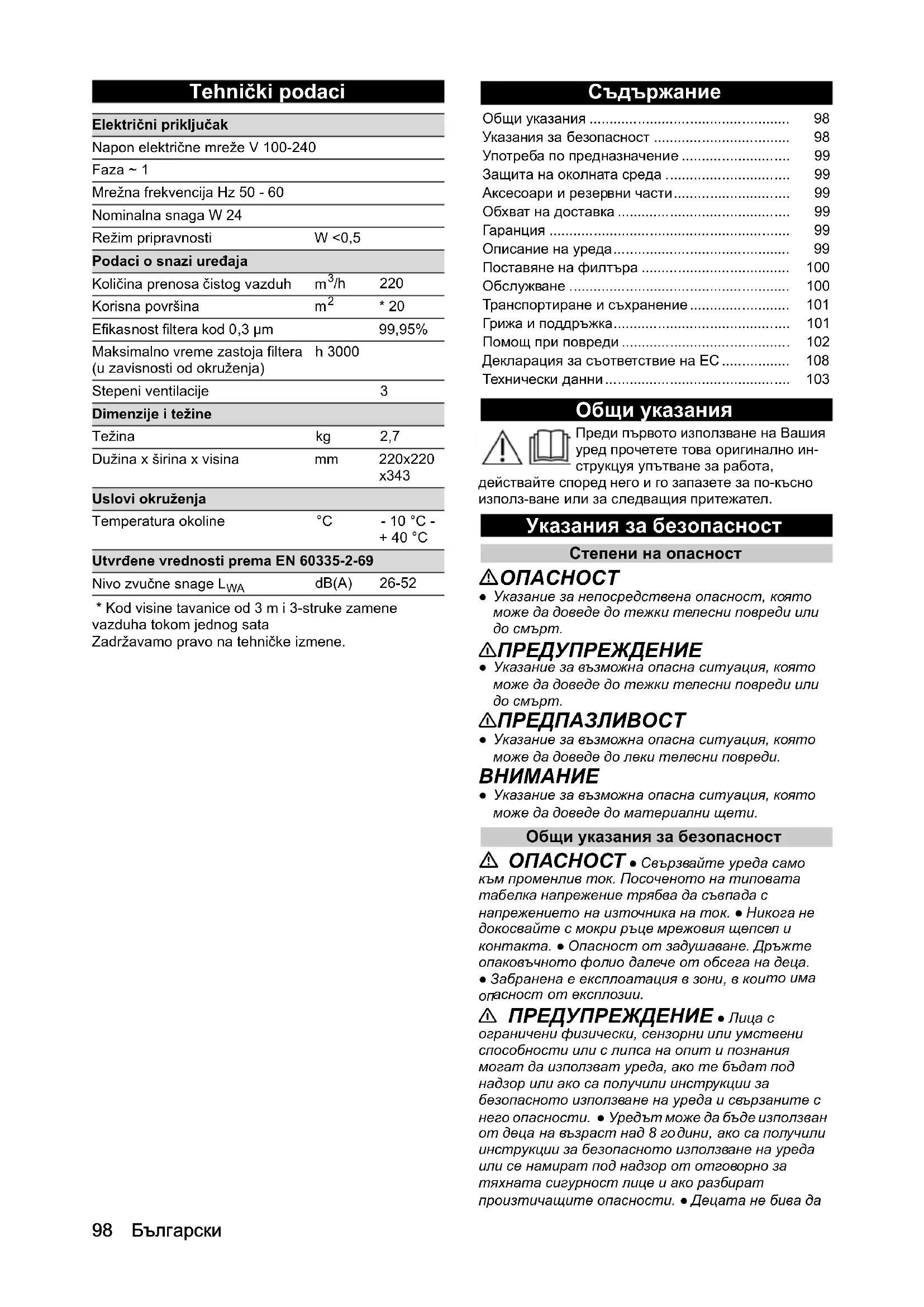 - Указания за безопасност p. 98