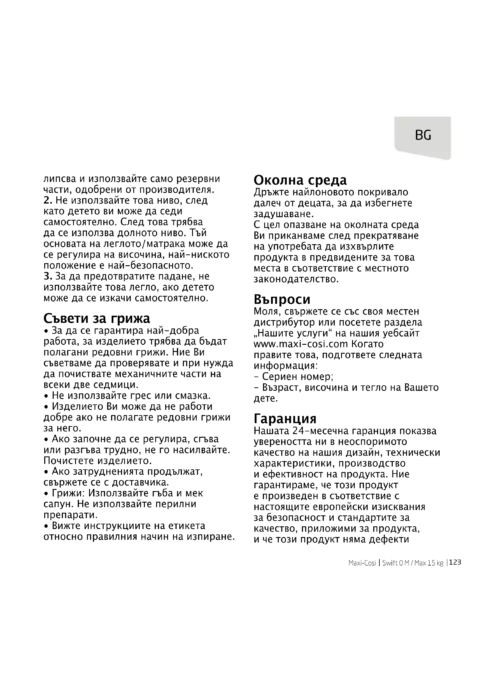 Моля, свържете се със своя местен дистрибутор или посетете раздела „Нашите услуги“ на нашия уебсайт www.maxi-cosi.com Когато правите това, подгответе следната информация: - Сериен номер; - Възраст, височина и тегло на Вашето