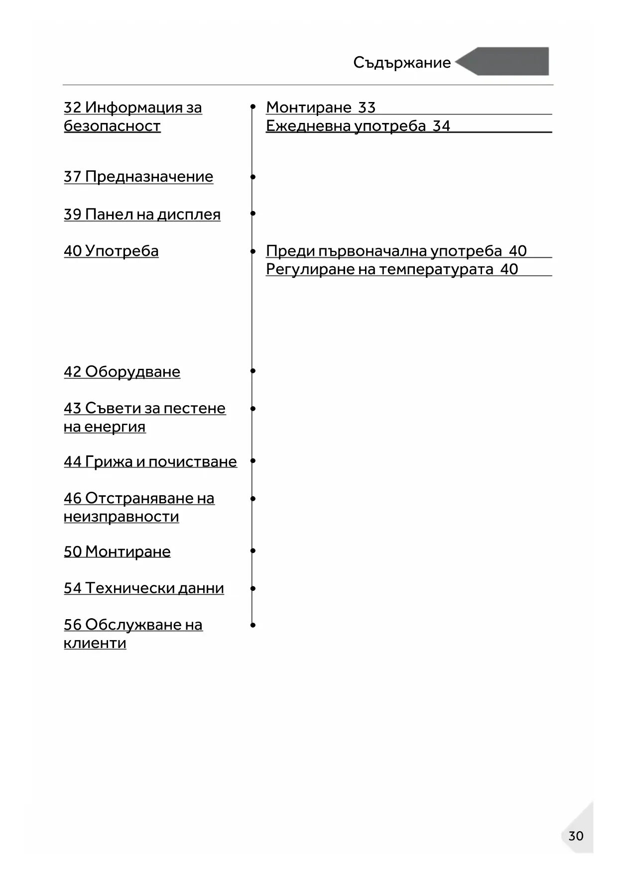 Преди първоначална употреба 40 Регулиране на температурата 40 42 Оборудване